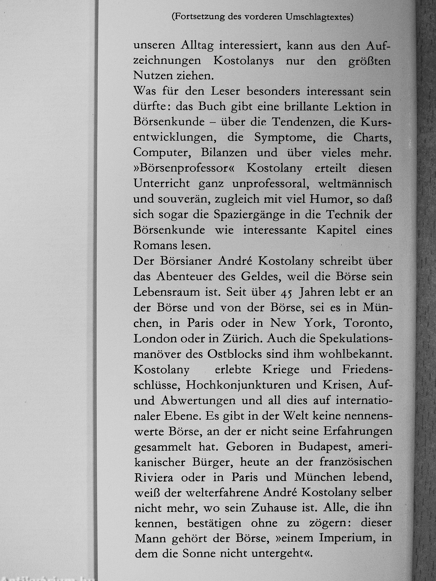 unseren Alltag interessiert, kann aus den Aufzeichnungen Kostolanys nur den größten Nutzen ziehen.