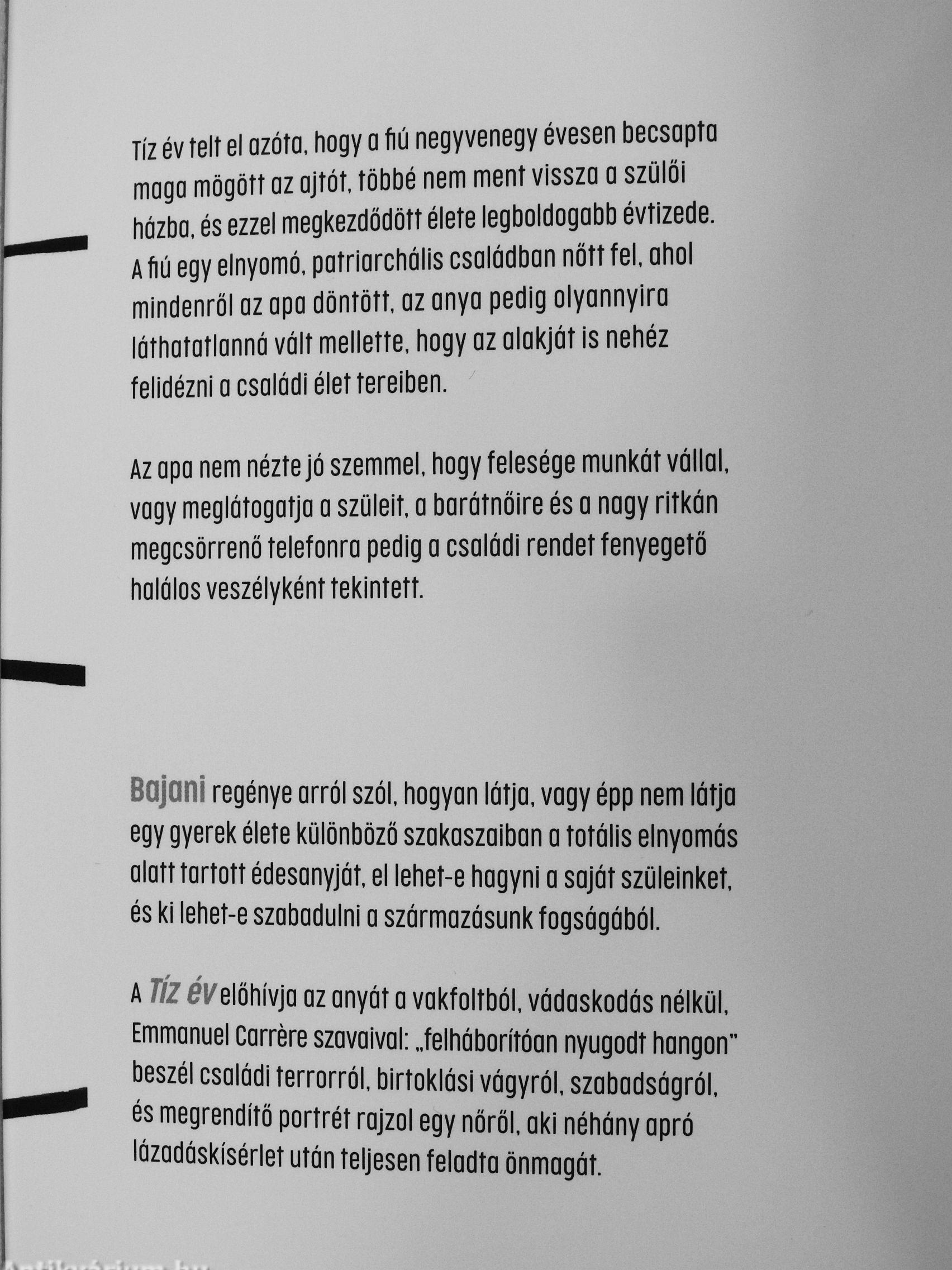 A TÍZ eVelőhívja az anyát a vakfoltból, vádaskodás nélkül, Emmanuel Carrére szavaival: „felháborítóan nyugodt hangon" beszél családi terrorról, birtoklási vágyról, szabadságról, és...