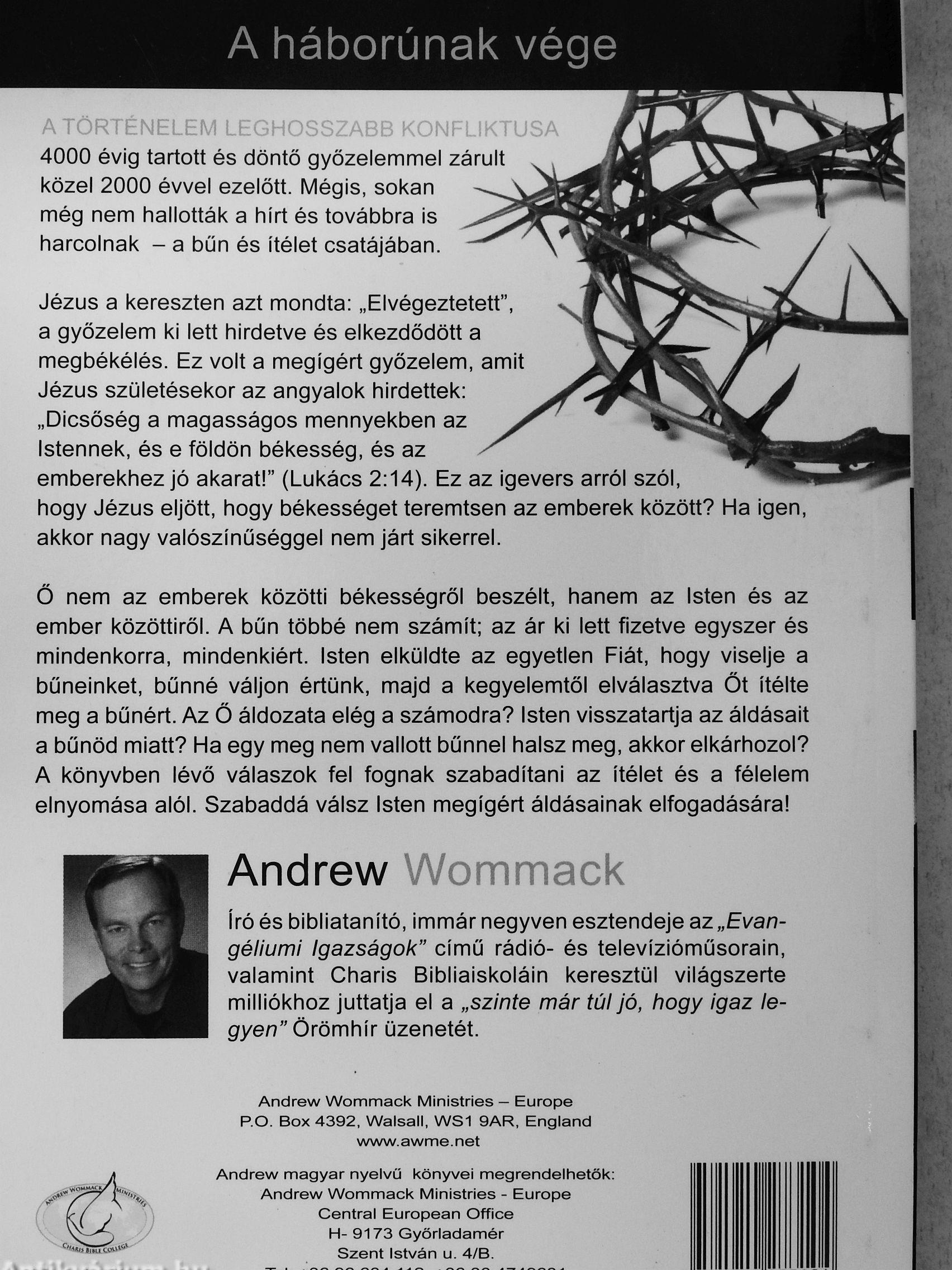 Andrew magyar nyelvű könyvei megrendelhetők: Andrew Wommack Ministries - Europe Central European Office H- 9173 Györladamér Szent István u. 4/B.