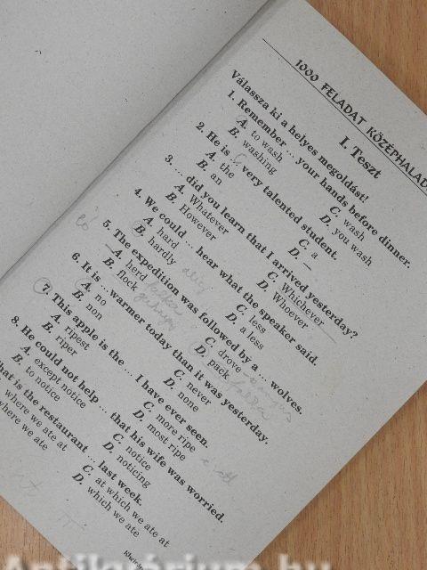 Könyvünkkel az angol nyelvet tanulók számára nyújtunk át egy 1000 feladatból álló tesztgyűjteményt, mely 20, egyenként 50 tesztből álló sorozatot tartalmaz.