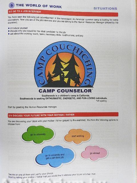 • mindhárom szóbeli vizsgarészhez - társalgás, szerepjáték, önálló témakifejtés -bőséges gyakorlóanyagot kínál
