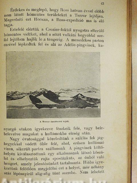 James Cook és James Ross immár történelmi nevei mellé méltó büszkeséggel jegyzi fel a délsarki kutatások krónikája Scott és shackleton nevét. Scott kapitány, jelen könyvünk szerzője, töretlen uton hatolt be 1902-ben a South Victoria föld belsejébe, aholk olyan szélességig jutott, mint senki más előtte. Egyetlen utazónak sikerült eddig ezt az eredményt túlszárnyalnia. Ez az utazó Shackleton hadnagy, Scott utitársa, aki mondhatatlan erőfeszítések árán, gleccser-hágókon át kapaszkodva felküzdötte magát (1908-9-ben) arra a jégborította fennsíkra, amelyen a déli sarknak kell lennie. Alig száznyolcvan kilométer választotta el a hősi kutatót a titokzatos déli pólustól, annyi küzdelem és vágy célpontjától. Vissza