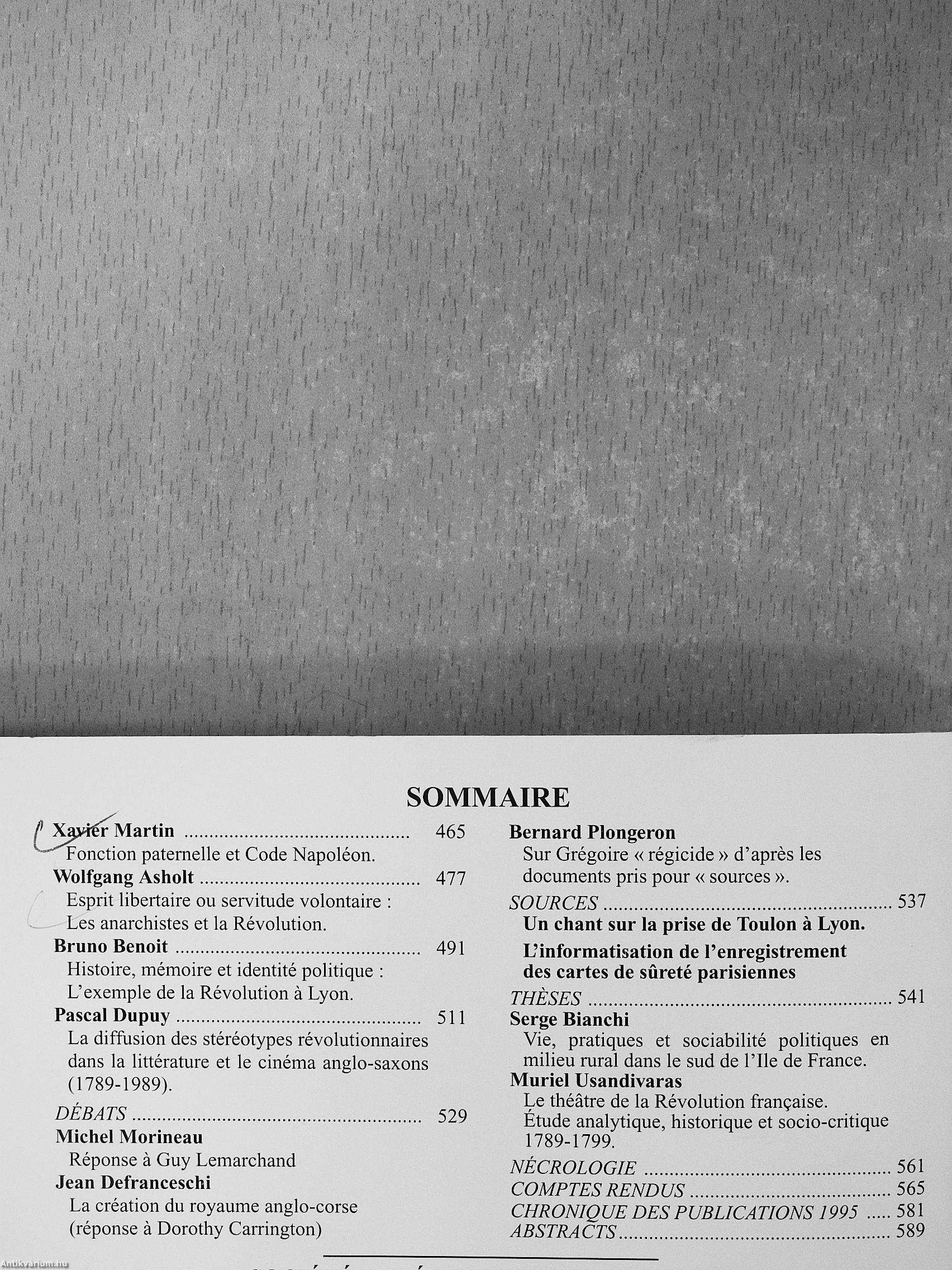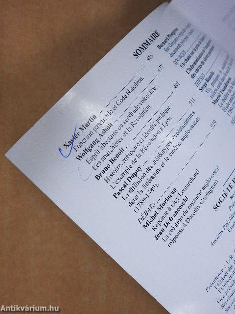 Sorozatcím: Annales Historiques de la Revolution Francaise