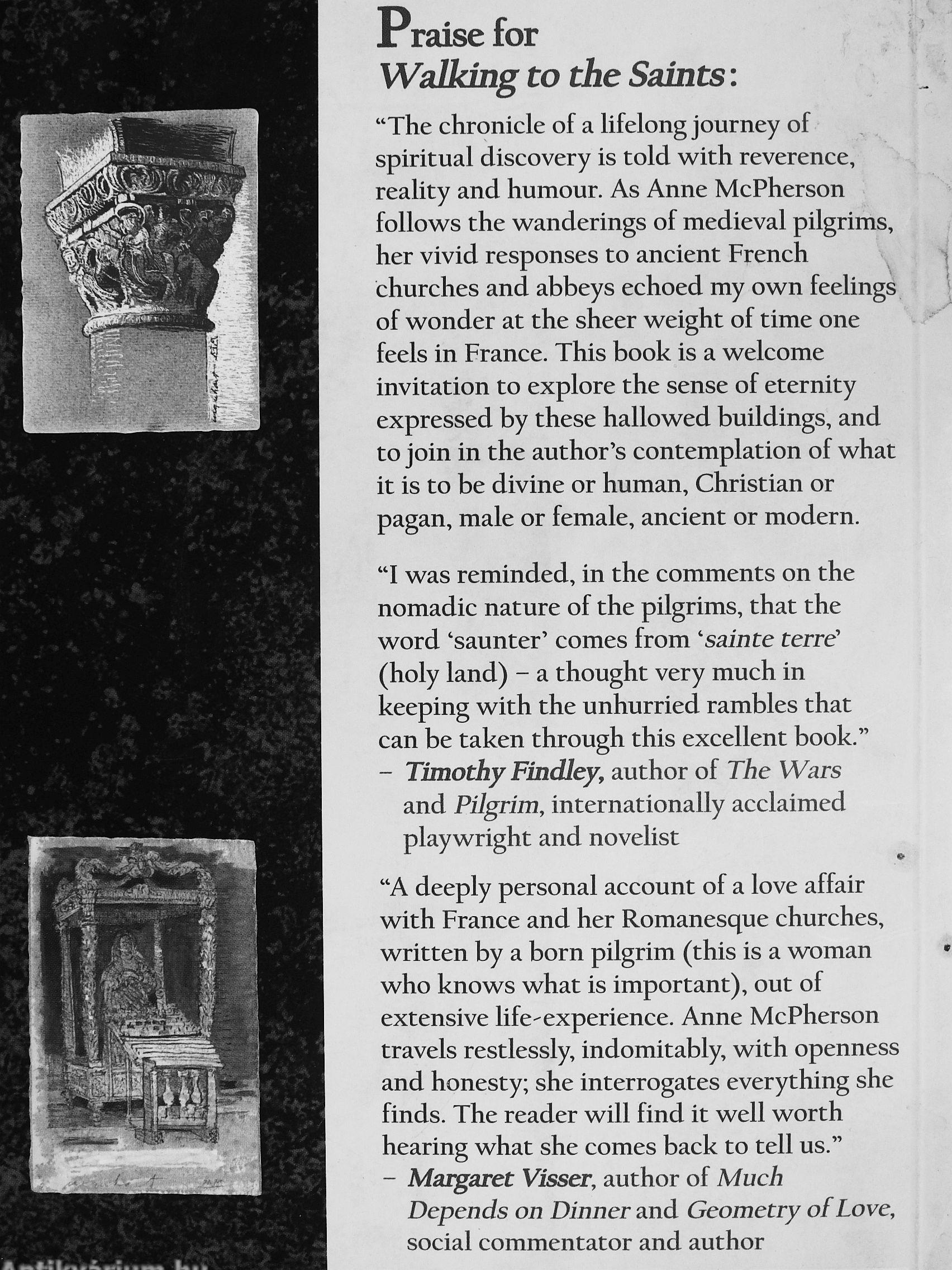 "A deeply personal account of a love affair with France and her Romanesque churches, written by a born pilgrim (this is a woman who knows what is important), out of extensive life-experience. Anne McPherson travels restlessly, indomitably, with openness and honesty; she interrogates everything she finds. The reader will find it well worth hearing what she comes back to tell us."