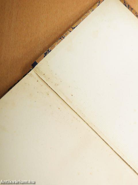 A borító kopott, néhány lap foltos. A kötés megtört.