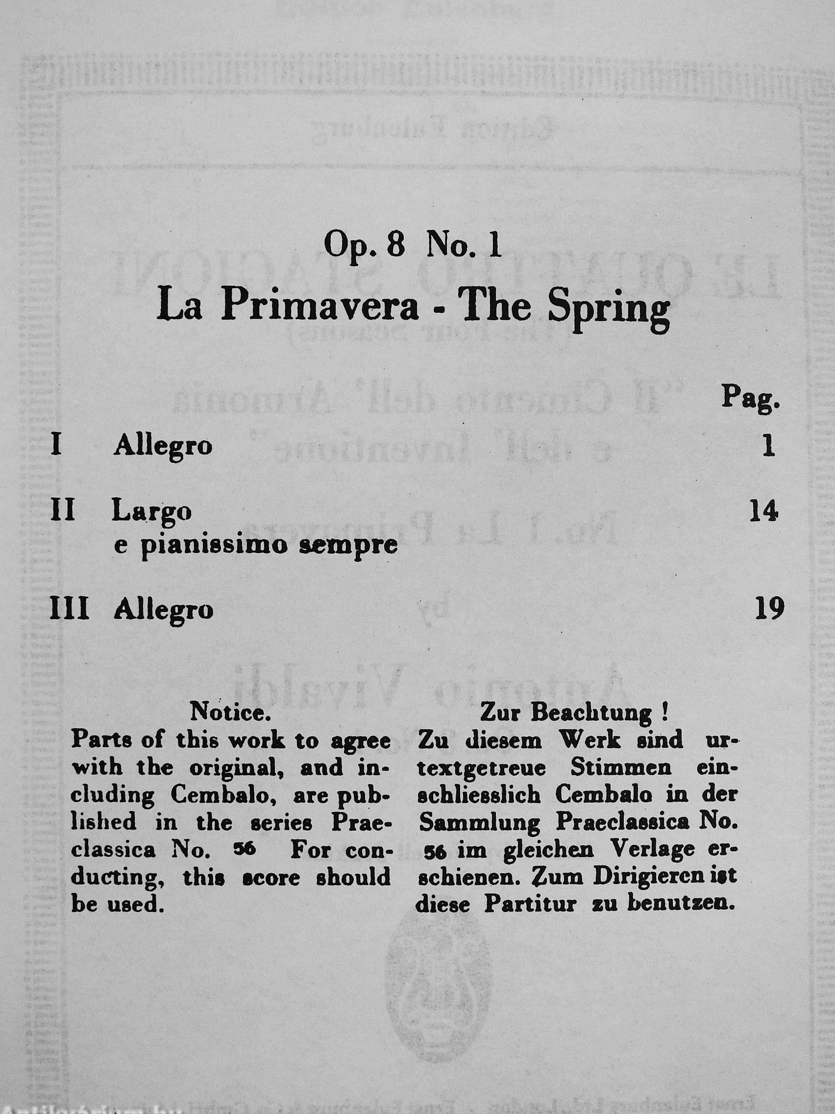Le Quattro Stagioni No. 1. - La Primavera