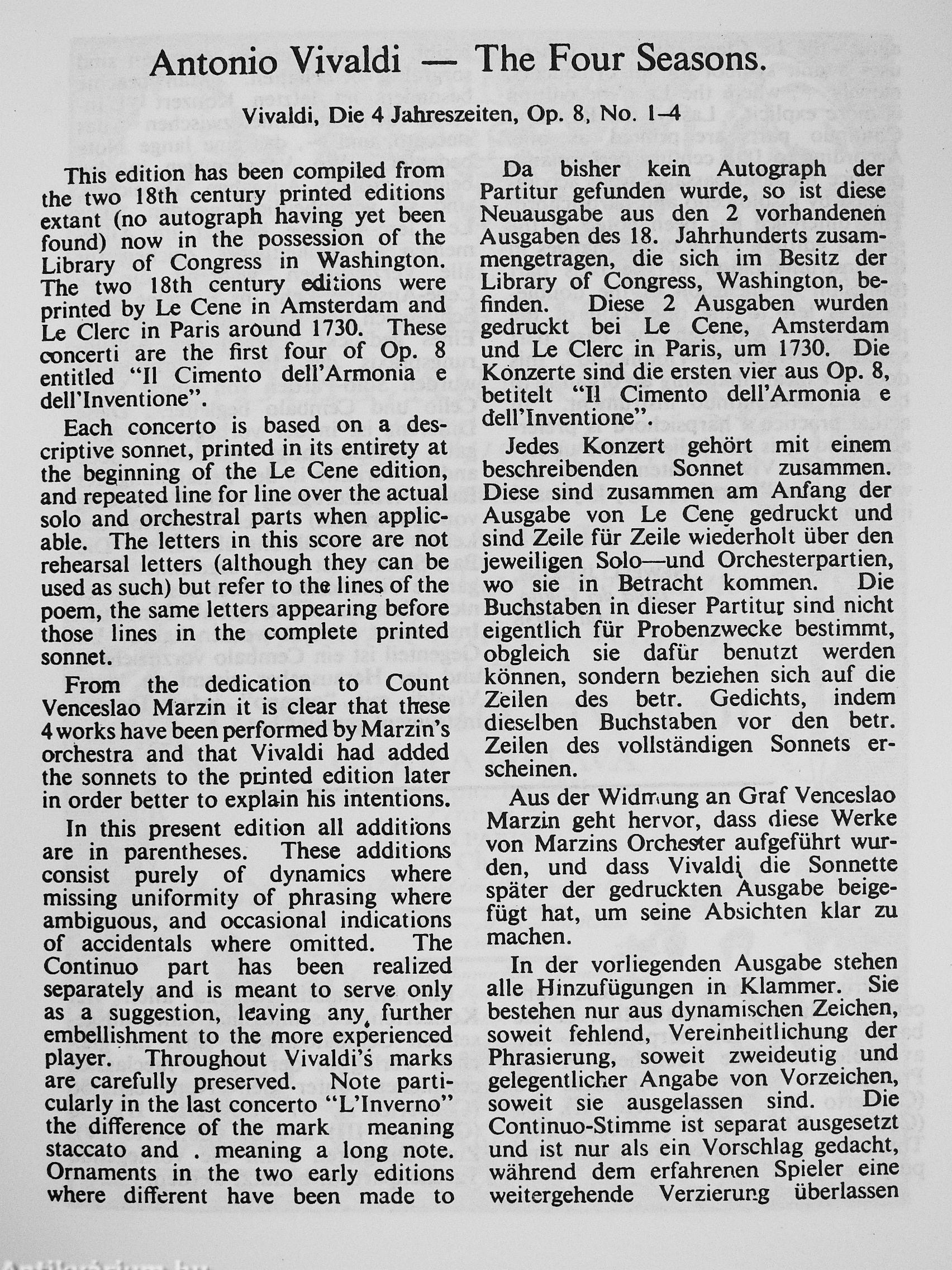 The Four Seasons No. 1./"Il Cimento dell' Armonia e dell' Inventione"/Op. 8 No. 1