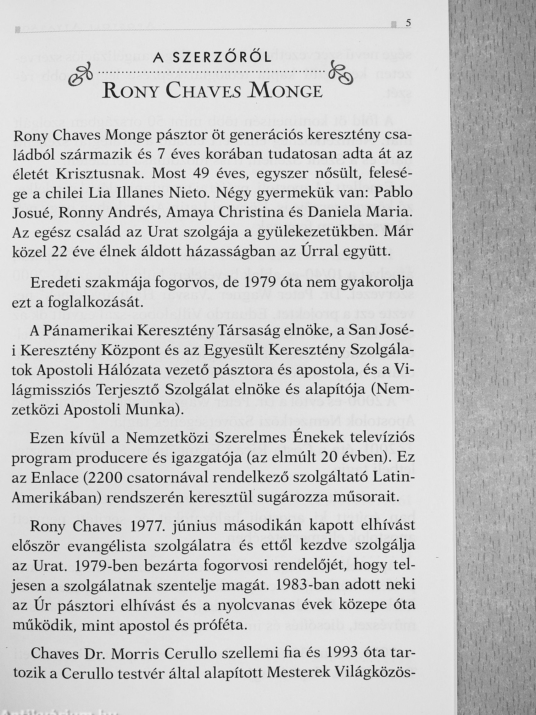 Rony Cliavez apoítol az egyik legeli.smerteblj latin-a^&ikai író és prédikátor nemzetközi szinten.Üzenete eg^. mí^ ö: