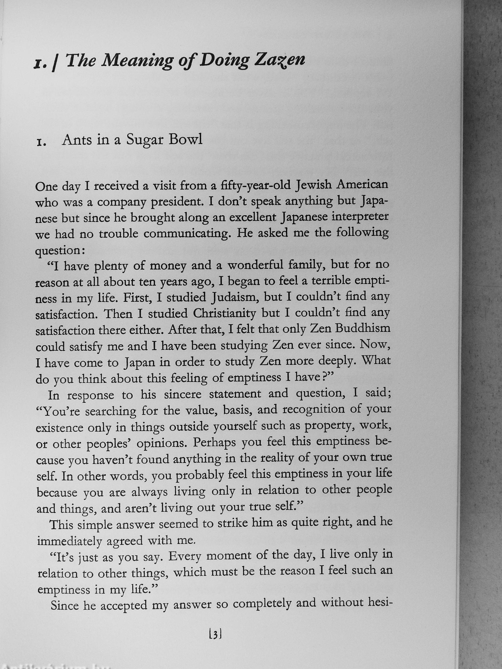 Until now a large number of books have presented philosophical, historical, and other aspects of both Buddhism in general and Zen in particular. However these books aren't so helpful or encouraging when you actually try to sit zazen.