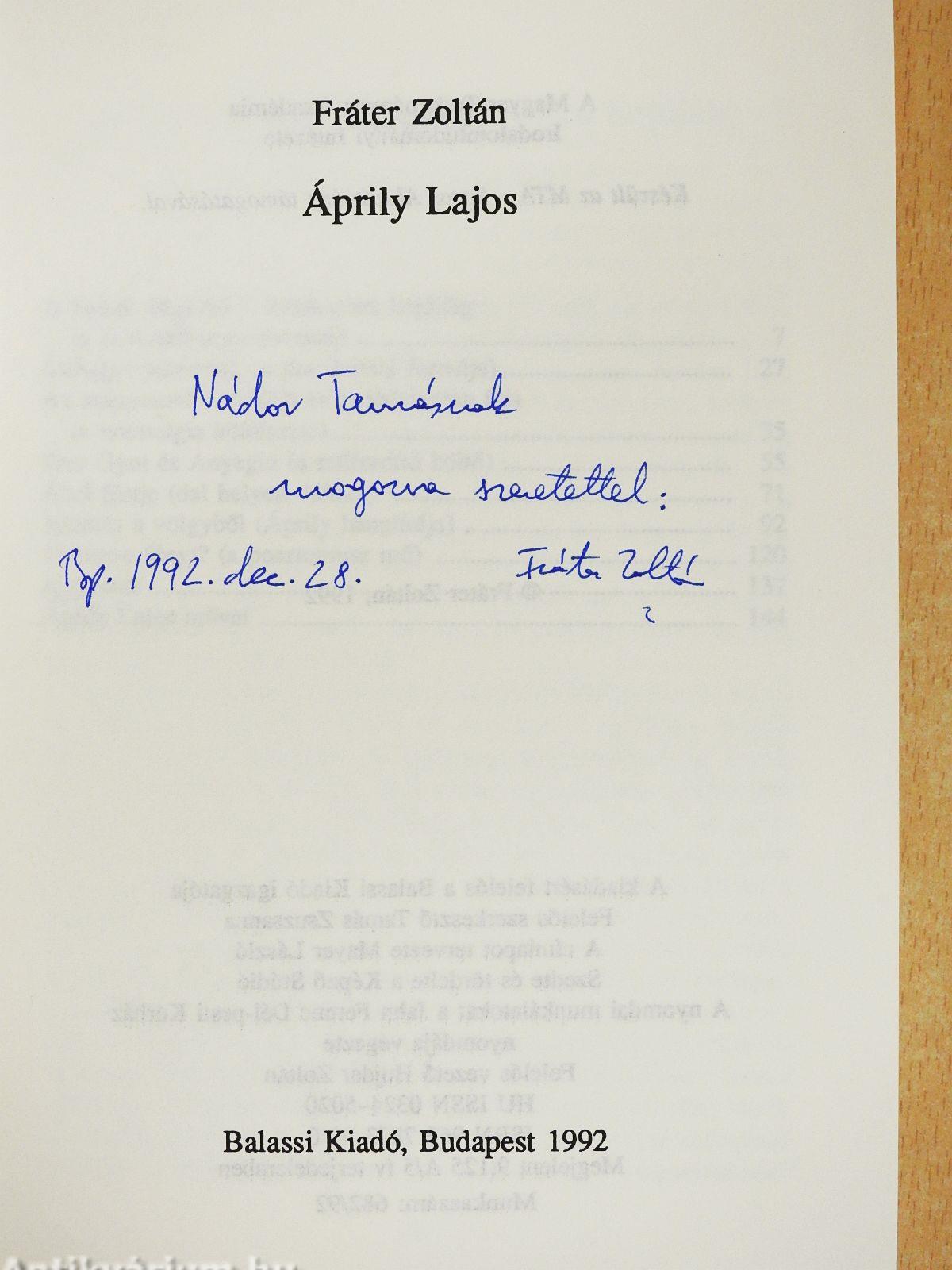 | Megjegyzés: | Fráter Zoltán szerző által dedikált példány. |