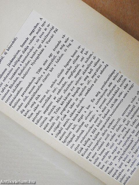 A költő művéről: szerettem volna elbeszélni benne egy ember életét, aki belekerül a történelem sodrába, viszi az ár; meg kell mártózzon az iszapban is; de mégse lesz mocskos. Lehet, hogy az életben nem így van, én a regényben így írtam. Nincs a "regényhősömnek" neve, minthogy a hétköznapok igazi hősei is névtelenek maradnak életükben, halálukban. A kor se kapott ebben a könyvben határozott jelzést: az emberi sors mindig fulladhat tragédiába és mindig érheti egy-egy aprócska kis öröm!