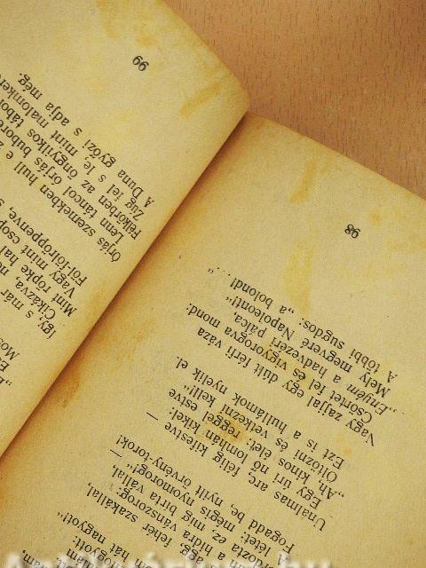 A borító elszíneződött és a belső részén ajándékozási bejegyzés található. Több lap foltos. Az előlap hiányzik.