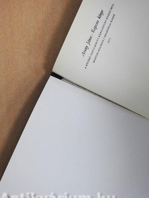 | Megjegyzés: | Papír védődobozban. Reprint kiadás. Arany János Kapcsos könyvének a Magyar Tudományos Akadémia Kézirattárában őrzött eredeti példánya nyomán készült. Rézlemez kapoccsal. |
