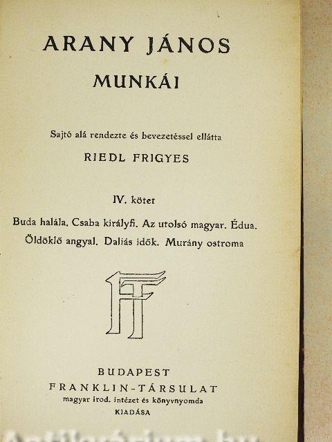 Arany János műveinek az Antikvarium.hu-n kapható vagy előjegyezhető listáját itt tekintheti meg: Arany János könyvek, művek