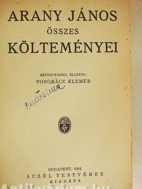 Arany János műveinek az Antikvarium.hu-n kapható vagy előjegyezhető listáját itt tekintheti meg: Arany János könyvek, művek