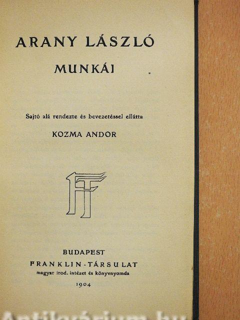 Megjegyzés: Arany László arcképével illusztrálva. Franklin-Társulat nyomdája nyomása.
