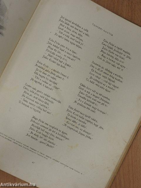 | Megjegyzés: | Aranyozott, színezett kötésben, dombornyomásos illusztrációval, egész vászonkötésben Gottermayer Nándor műhelyéből. Arany János 24 költeménye Zichy Mihály 40 rajzával. A Pesti Napló ajándéka az 1898. évre. "Kosmos" Műintézet nyomása. |