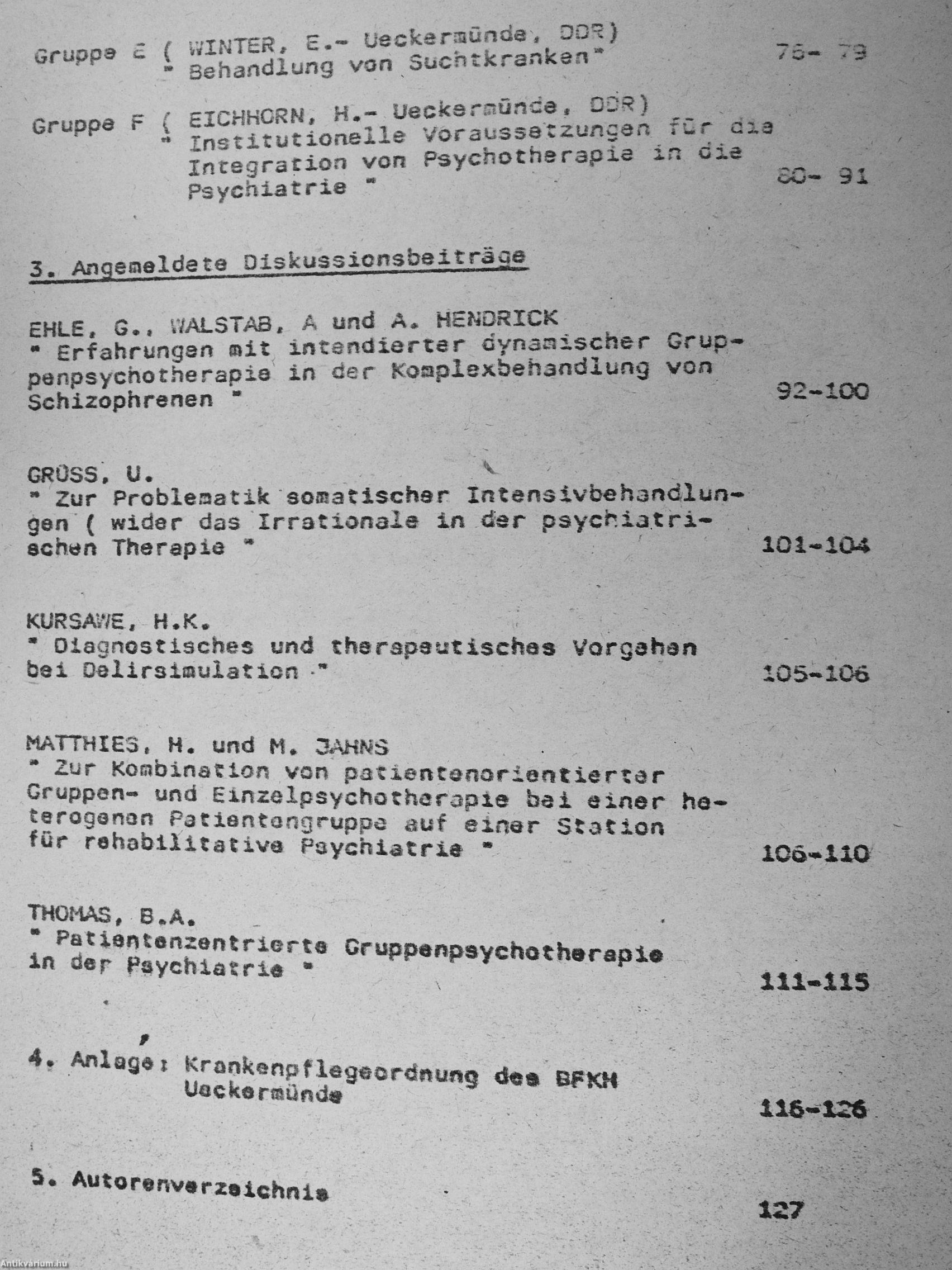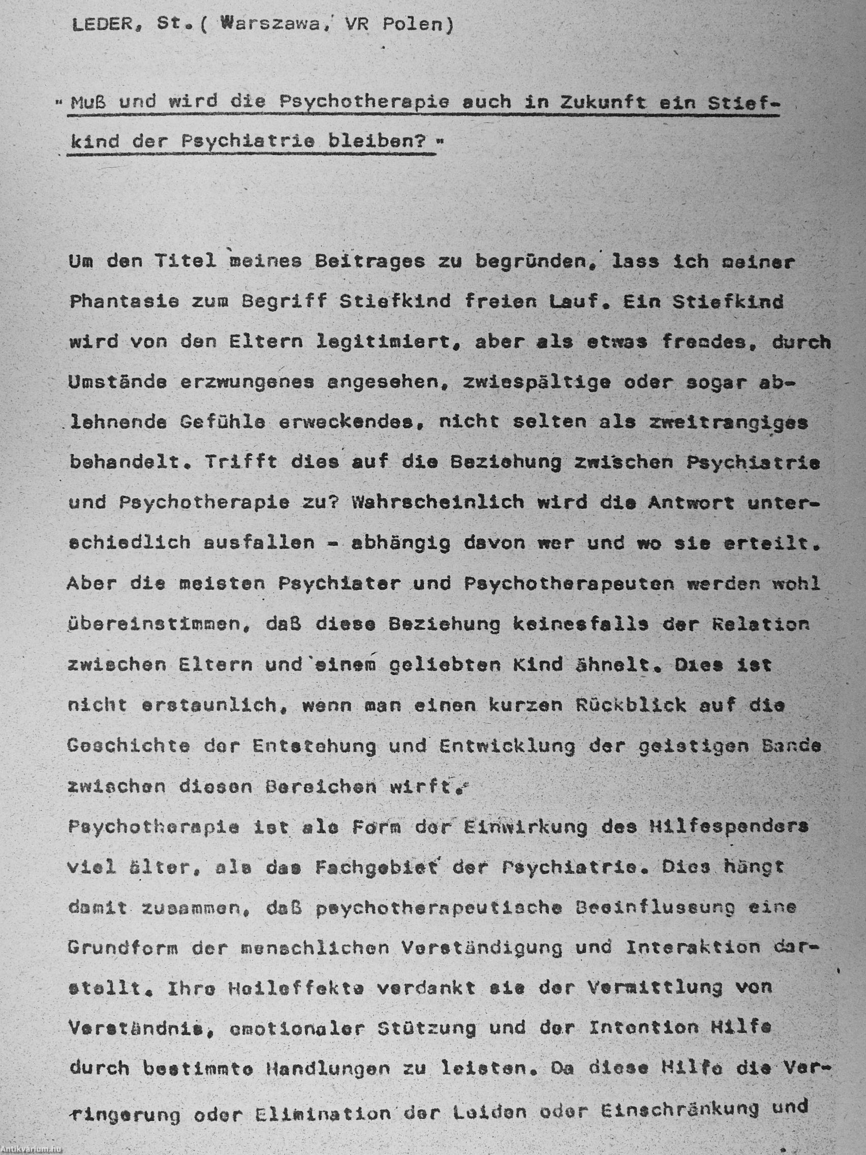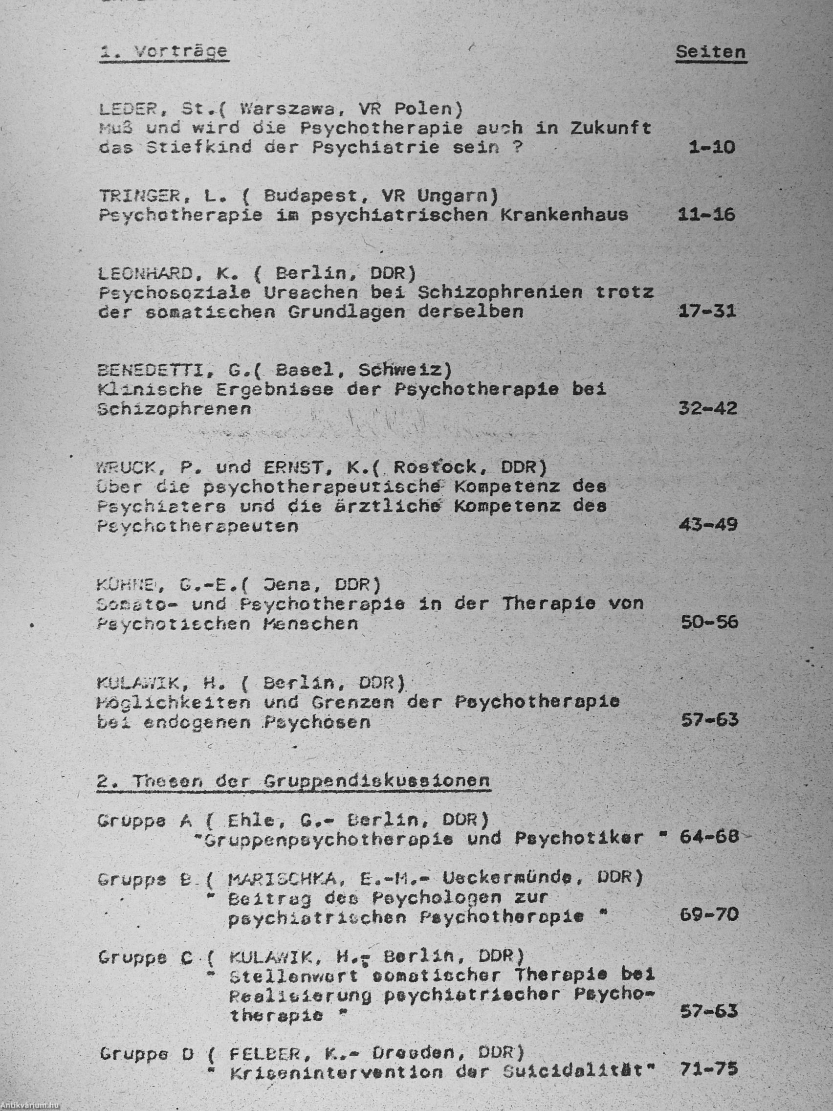 Arbeitsmaterialien des Symposiums - "Erfahrungen und Ergebnisse der Psychotherapie in der Psychiatrie"