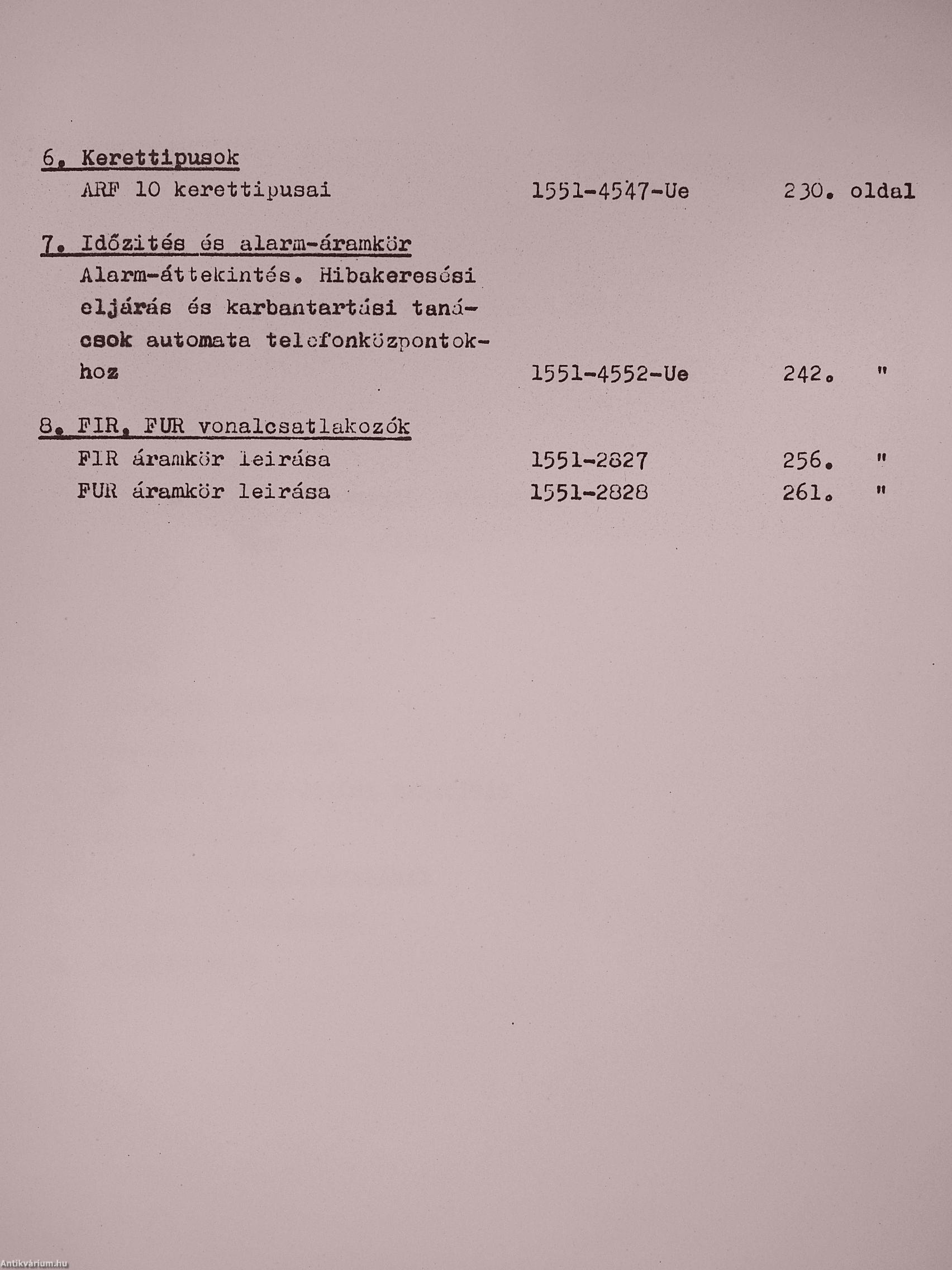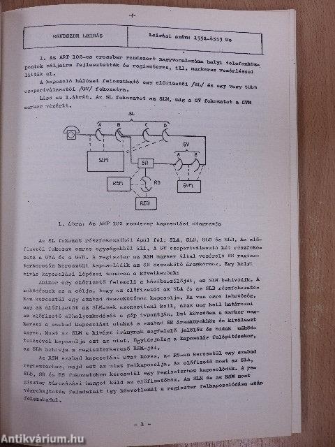 I.: ARF 102 távbeszélő főközpont általános leírása/II.: ARF 102 tanulmányi anyag részletezése/BHG Külsőszerelés Műszaki Osztály