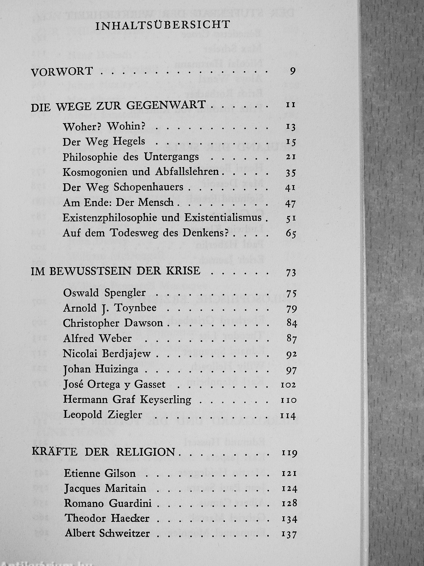 gen Strömungen unserer Zeit zu o^nenjind sie auf die entscheidenden Kräfte und Wirkungslinien zurückzuführen. Es versucht, die Zeitgeschichte des Denkens von den tragenden Persönlichkeiten her zu deuten. In eingängiger, klarer Form und ohne sich einer philosophischen spezialSprache zubedienen, führt es den an der Geistesgeschichte des 19. und unseres eigenen Jahrhunderts interessierten Leser in verständlicher Form an das manchmal schwer Verständliche...