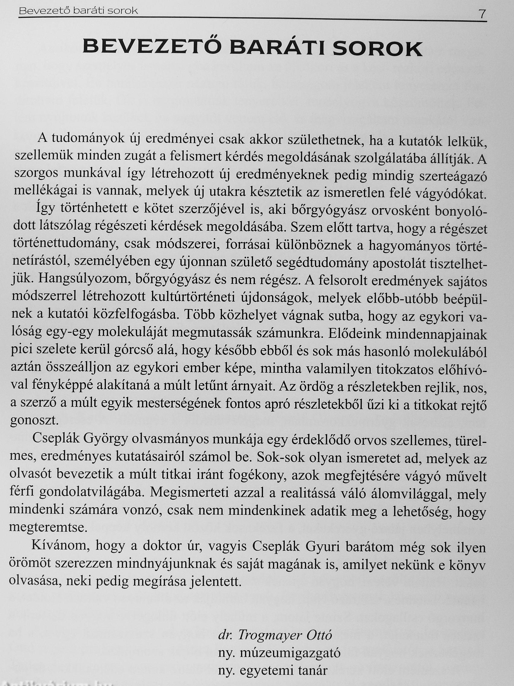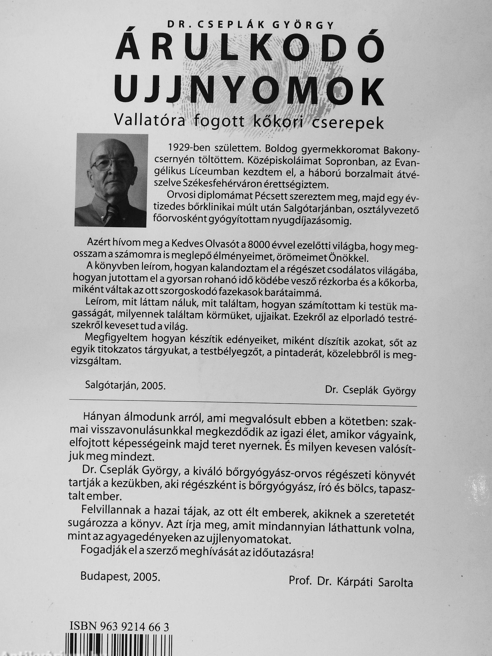 Dr. Cseplák György, a kiváló bőrgyógyász-orvos régészeti könyvét tartják a kezükben, aki régészként is bőrgyógyász, író és bölcs, tapasztaltember.