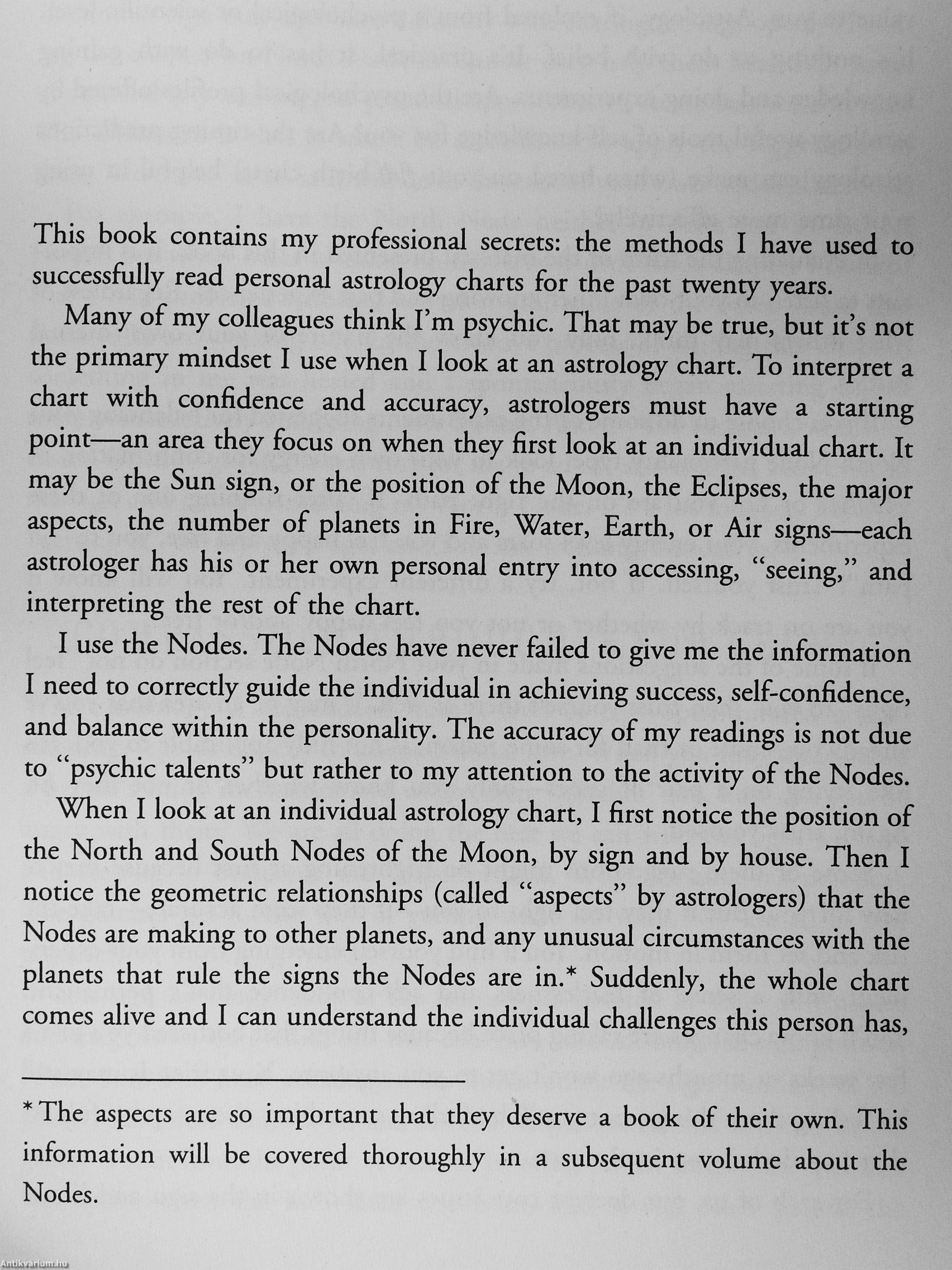 Astrologer Jan Spiller shows you the key to discovering your hidden talents, / your deepest desires, and the ways you can avoid negative influences that may: distract you from achieving your true life purpose, as/evealed in your chart by the position of the North Node of the Moon. WJth insight and depth ? impossible to gain from the commonly known sun-sigtí profiles, the enlightening i self-portrait offered by the Nodes of the Moon can explain the life lessons you • came here to learn and how to act^ieve the fulfillment and peace you desire." Jan Spiller shows you höw to locate the all-important North Node of the Moon in your astrological chart and provides a detailed interpretation of its 0 influence and practical exercises to help you learn about: ' 1 ' • The SPECIAL TALENT that is waiting for ypu, a unique gift that could ; - i easily be turned into...