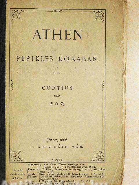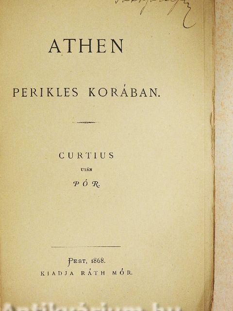 Azon százötven esztendő, melyek a persa betöréstől Nagy Sándor trónra lépteig letelének, a görög szellem és élet legpompásabb virágzásának, de egyszersmind sajnosan megeredt hanyatlásának kora. Athén központja az ez időszerinti hellen világnak és vezére minden tekintetben elannyira, hogy e város belviszonyain és szellemi törekvésem az összes görög élet jelleme fölismerszik. Sőt, midőn az atheniek politikai befolyása,, már csökkenőben vala, jelentőségűk még hosszú időre fönmaradt. Harminc év ez időszakból (459-429) Periklesre esik, e fényes kor legfényesbik részlete. Joggal nevezzük az ő korának, mert ez alatt csaknem korlátlanul ő vezette az államhajót. Célját, hogy Athent Hellas első és legmíveltebb országává tegye, miként és mennyire közelíté meg, kimutatni ez értekezés föladata, melyet honi nyelvünkön Curtius után adunk. Vissza