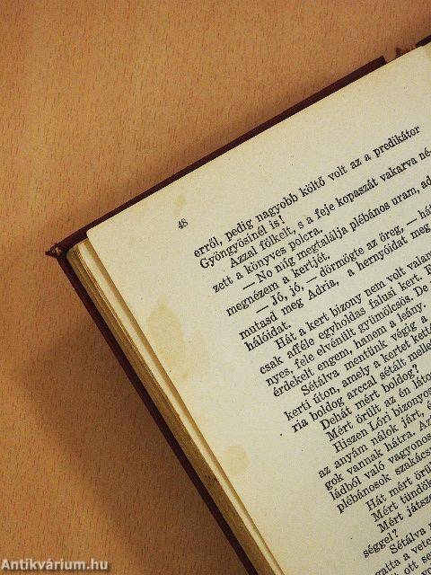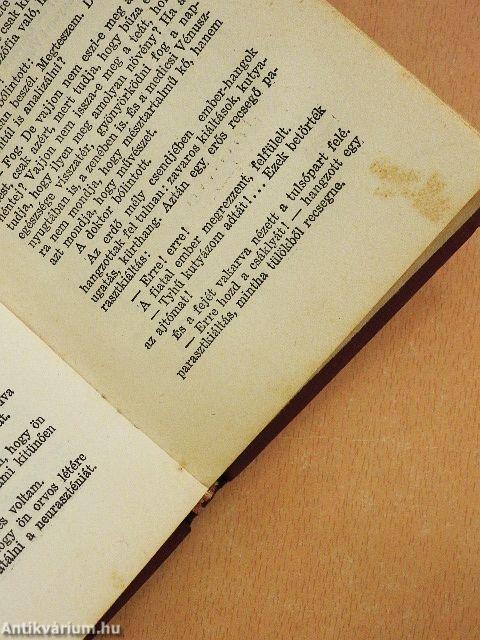 A borító kopott. A kötés megtört. Néhány lap foltos. Az előzéklapon tulajdonosi bejegyzés található.