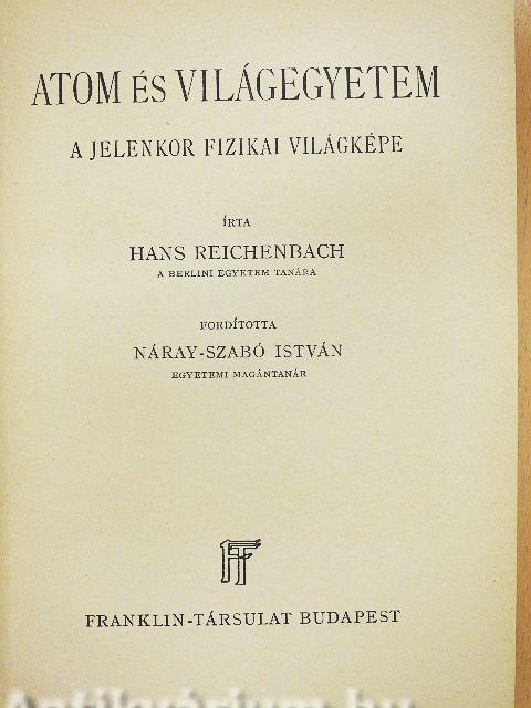 | Megjegyzés: | Fekete-fehér ábrákkal, fotókkal illusztrált. Nyomtatta Franklin-Társulat nyomdája. Írta: Hans Reichenbach a berlini egyetem tanára, fordította: Náray-Szabó István egyetemi magántanár. |
