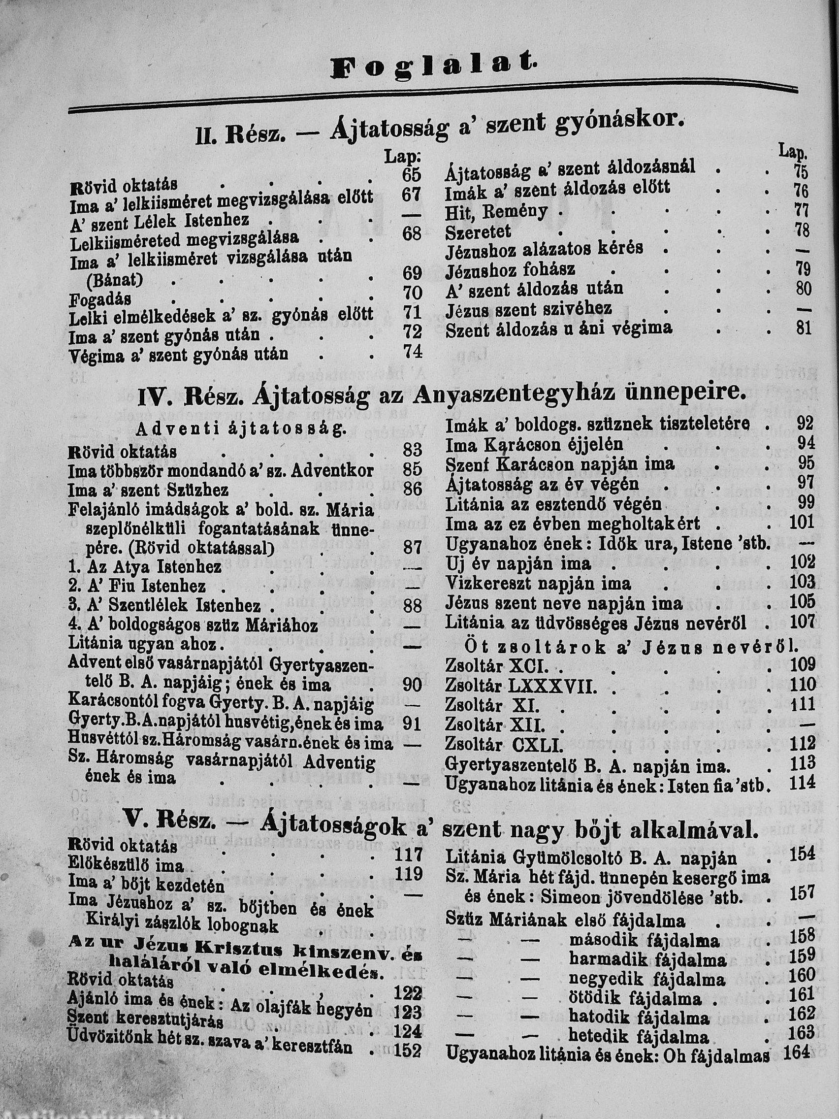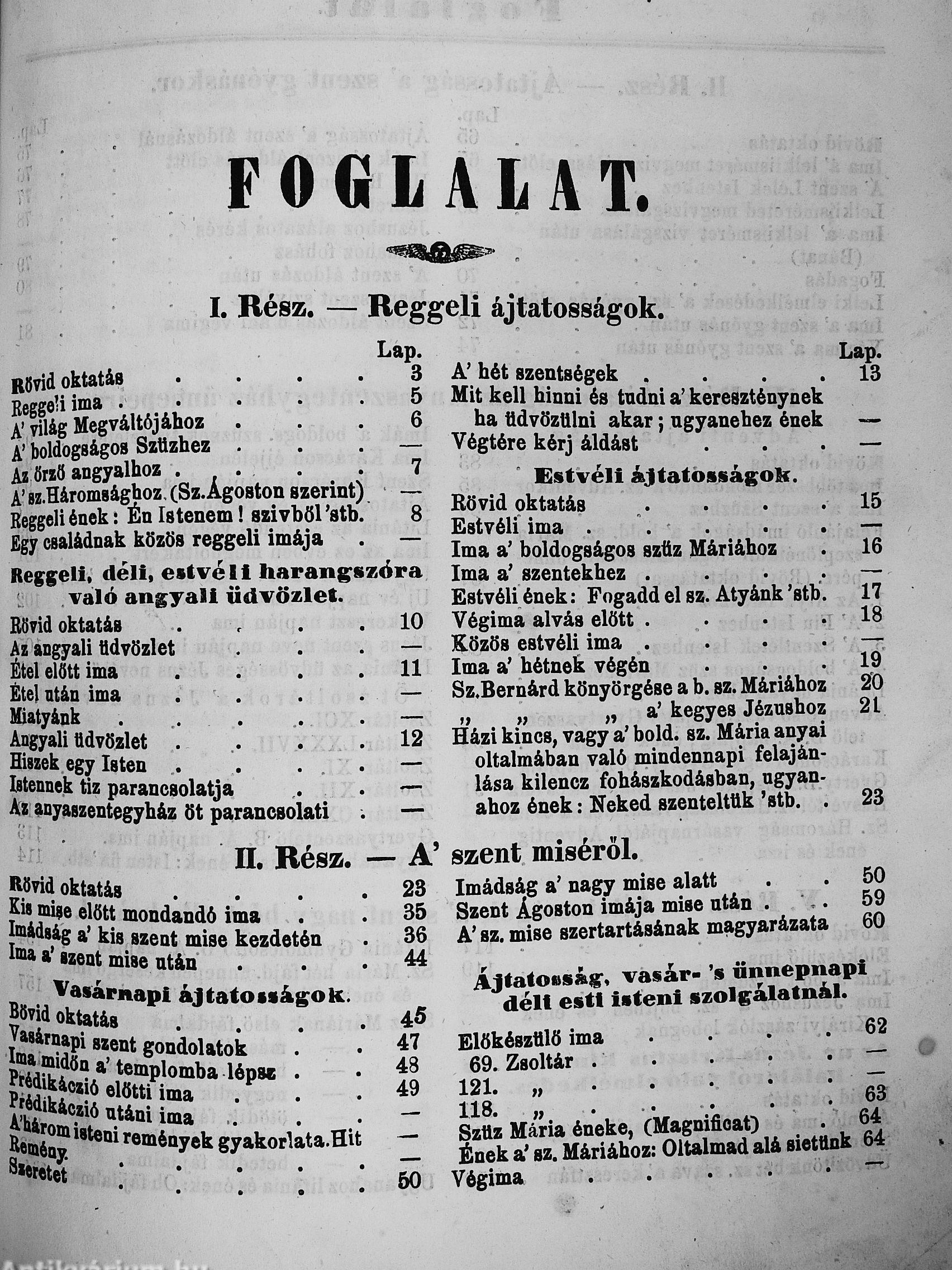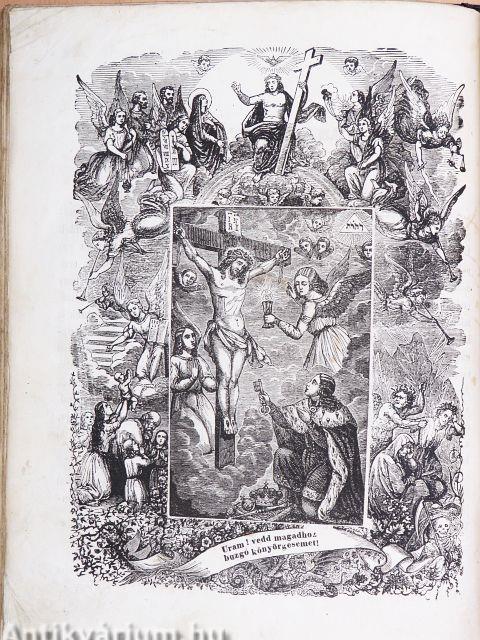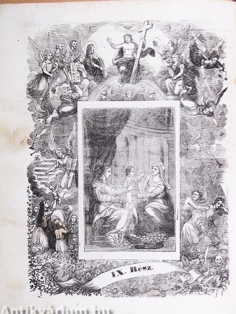 | Megjegyzés: | Fekete-fehér egész oldalas és szövegközti fametszetekkel illusztrálva. Az ájtatos keresztény kath. Hiveknek örök lelki üdvök elnyerésére szerzett Áts Benjamin atya, Szent Ferencz-rendi áldozár, pesti hitszónok és missionárius. Ezüstözött, kiadói bőr kötésben az első és hátsó kötéstáblán dombornyomású kereszttel díszítve, rézkapoccsal. |