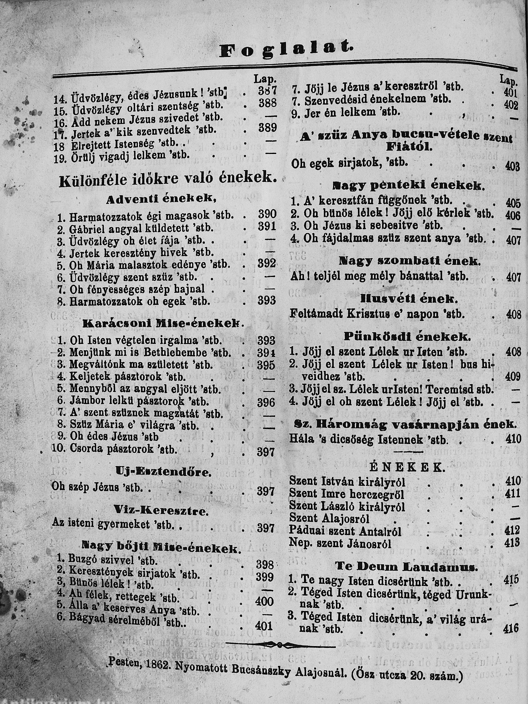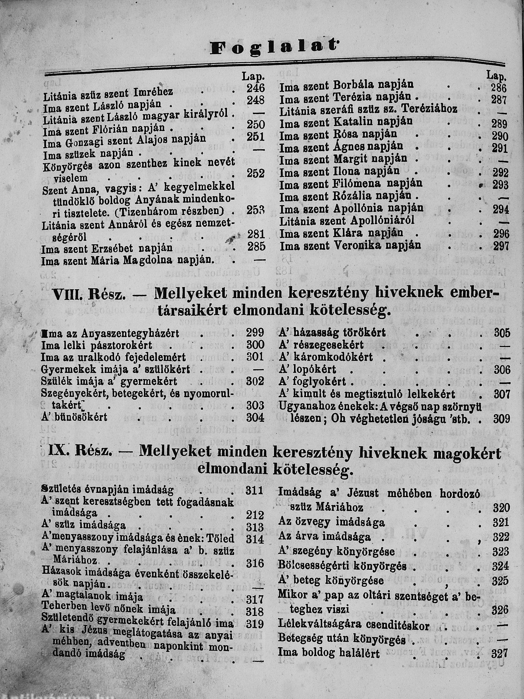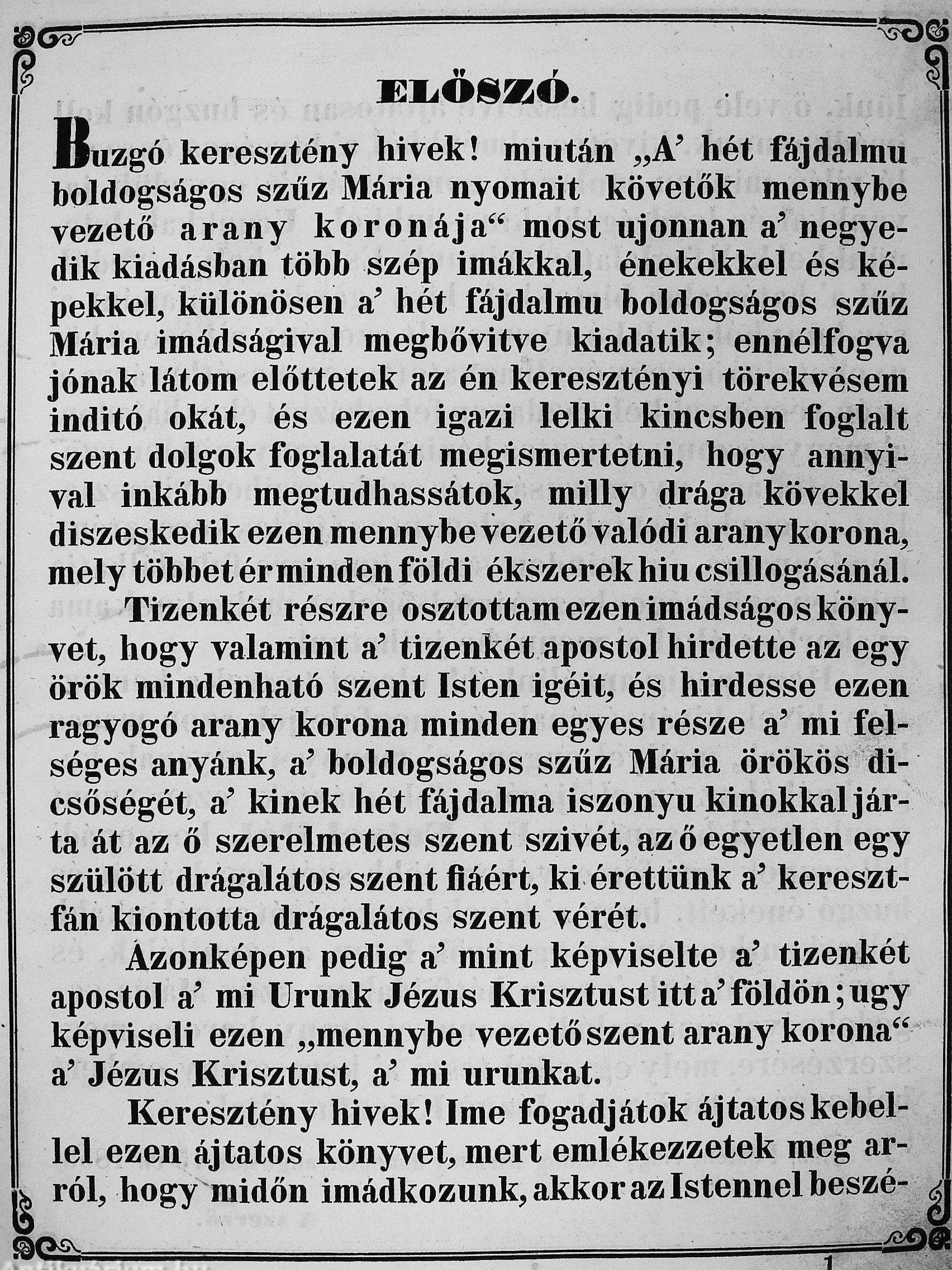 | Megjegyzés: | Fekete-fehér egész oldalas és szövegközti fametszetekkel illusztrálva. Az ájtatos keresztény kath. Hiveknek örök lelki üdvök elnyerésére szerzett Áts Benjamin atya, Szent Ferencz-rendi áldozár, pesti hitszónok és missionárius. Ezüstözött, kiadói bőr kötésben az első és hátsó kötéstáblán dombornyomású kereszttel díszítve, rézkapoccsal. |