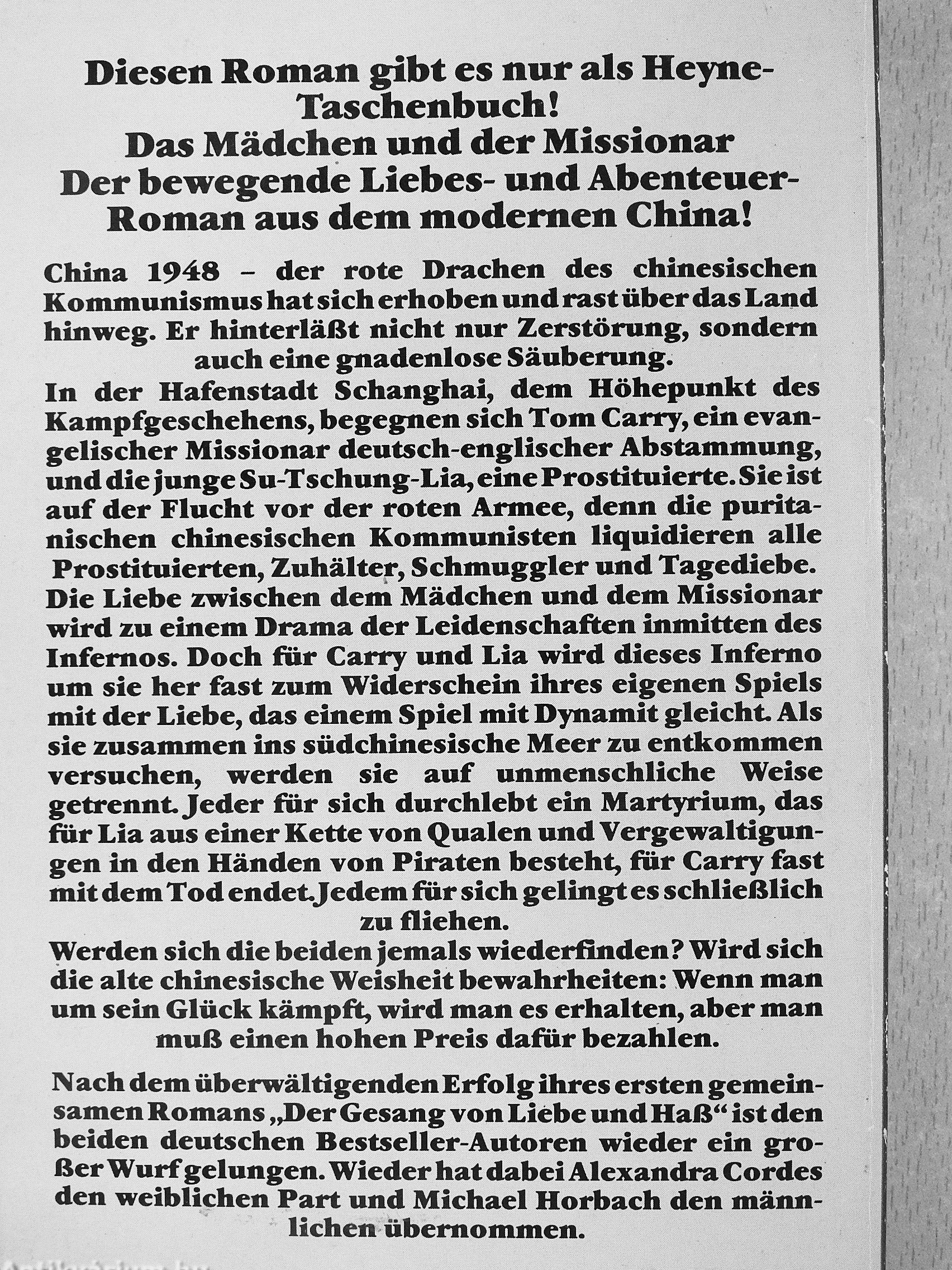 Diesen Roman gibt es nur als Heyne-Taschenbuch ! Das Mädchen und der Missionar Der bewegende Liebes- und Abenteuer-Roman aus dem modernen China!