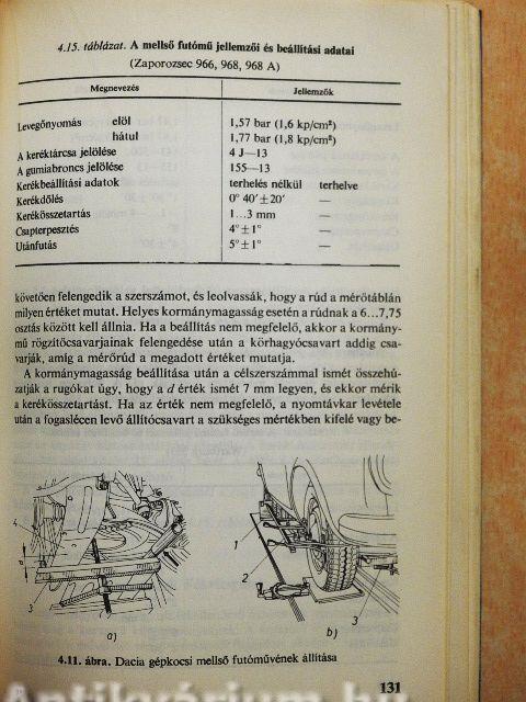 | A személygépkocsi javítása, illesztési és beállítási adatai | 140 |