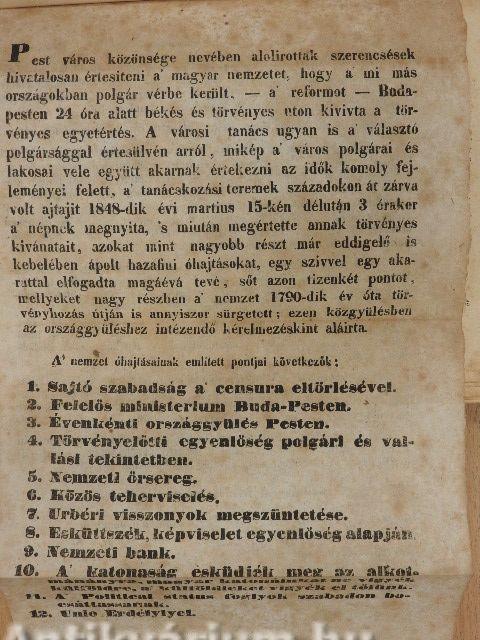 országban és Budapesten. - A márcziusi ifjúság. - A márczius 15-iki események: A 12 pont. - Petőfi nemzeti dala. - Táncsics kiszabadítása. - Szabadsajtó. - A márczius 16-iki események: Az őrsereg megalakítása. -Kivilágítás. - A márczius 17-iki események : A tanszabadság. - Az ország csatlakozása a márcziusi eseményekhez 3-80