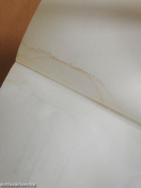 A borító, a lapélek és több lap a nedvességtől hullámos és foltos.