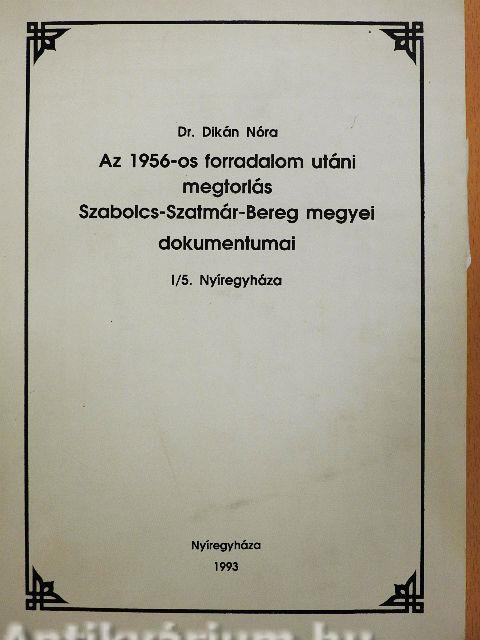 Az 1956-os forradalom utáni megtorlás Szabolcs-Szatmár-Bereg megyei dokumentumai I/5.