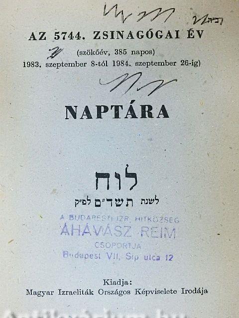 | Sorozatcím: | Zsinagógai év naptára |