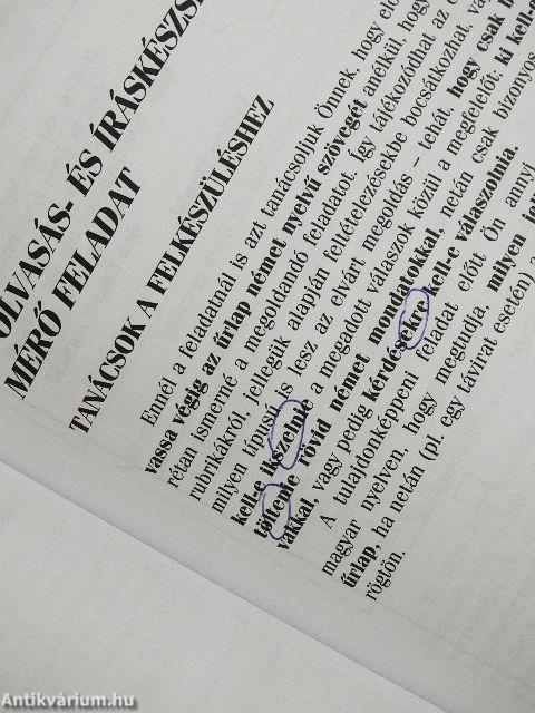 | Olvasás- és íráskészséget mérő feladat | 109 |