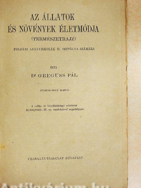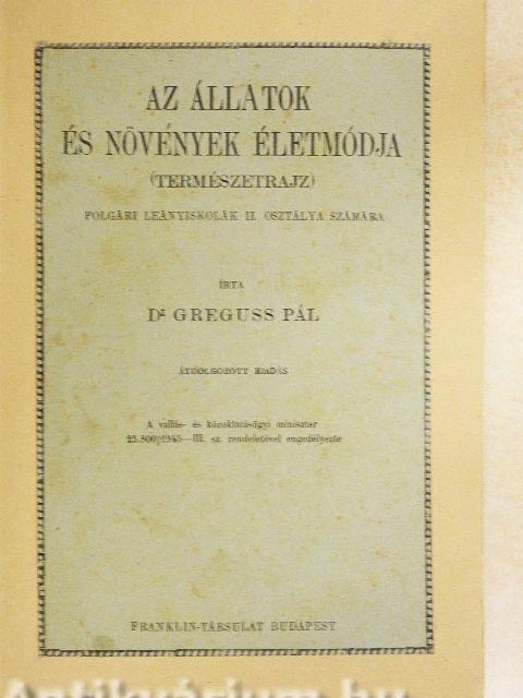 Dr. Greguss Pál műveinek az Antikvarium.hu-n kapható vagy előjegyezhető listáját itt tekintheti meg: Dr. Greguss Pál könyvek, művek