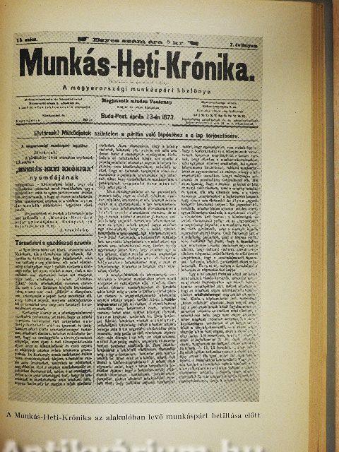 | A Munkás Heti-Krónika és az Arbeit er-Wochen-Chronik megjelenése. Kísérletek a munkáspárt megalakítására | 216 |