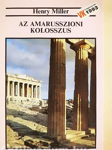 Az erotikus szókimondás két híres regénye, a Ráktérítő és a Baktérítő Henry Miller tízéves önkéntes "száműzetésének" terméke, s ezekhez kapcsolódik Az amarusszioni kolosszus (Görögország szelleme) is, ez a rendhagyó útleírás, az évtizedet lezáró, Görögországban töltött gyönyörű esztendő krónikája. Sokrétű könyv, a feszültségekkel teli 1940-es esztendőben érdekesen rakódnak egymásra különböző rétegei: Európa belesodródott a háborúba, s az író szenvedélyes, szubjektív, lírai gondolatait történelemről, emberi sorsról, izgalmasan ellenpontozza a görög múlt idézése.