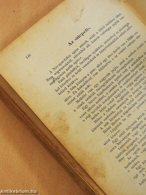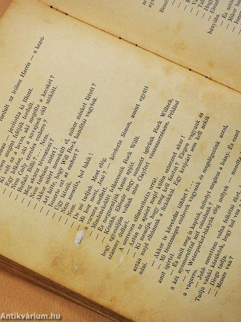 A gerinc és hátsó kötéstábla hiányzik. A borító megtört, kopott, sérült. Több lap foltos. Az előzéklapon ajándékozási és tulajdonosi bejegyzés, a címlapon tulajdonosi bejegyzés, az előzéklapon és címlapon jelölés található. A lapok foltosak. A 161-174. oldal hiányzik a könyvből.