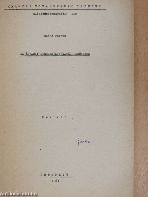 | Sorozatcím: | A Mérnöki Továbbképző Intézet előadássorozatából |