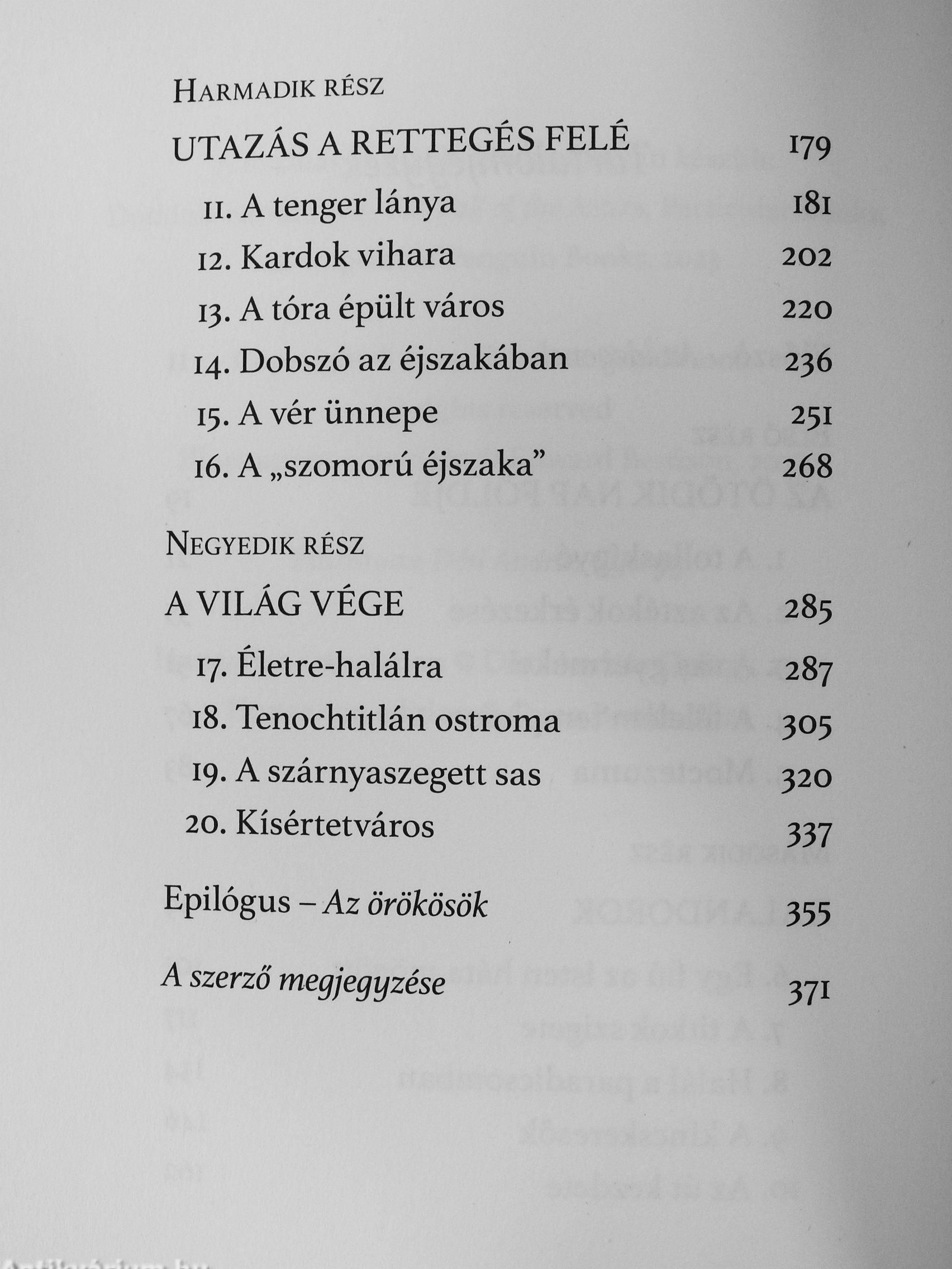 Ám amikor spanyol felfedezők aranyra éhesen partra szálltak a Mexikói-öbölben, hogy szerencsét próbáljanak, többé már semmi sem lehetett olyan, mint régen Dominic Sandbrook végigvezet a hódítók elképesztő és alantas útján, ahogy az acélpengével és gyalogsági ágyúkkal felszereit pár száz zsoldos és civil, valamint láthatatlan fegyvertársuk, az Európából behurcolt himlő összemérte erejét a buzogánnyal és lándzsával harcoló indián törzsekkei.