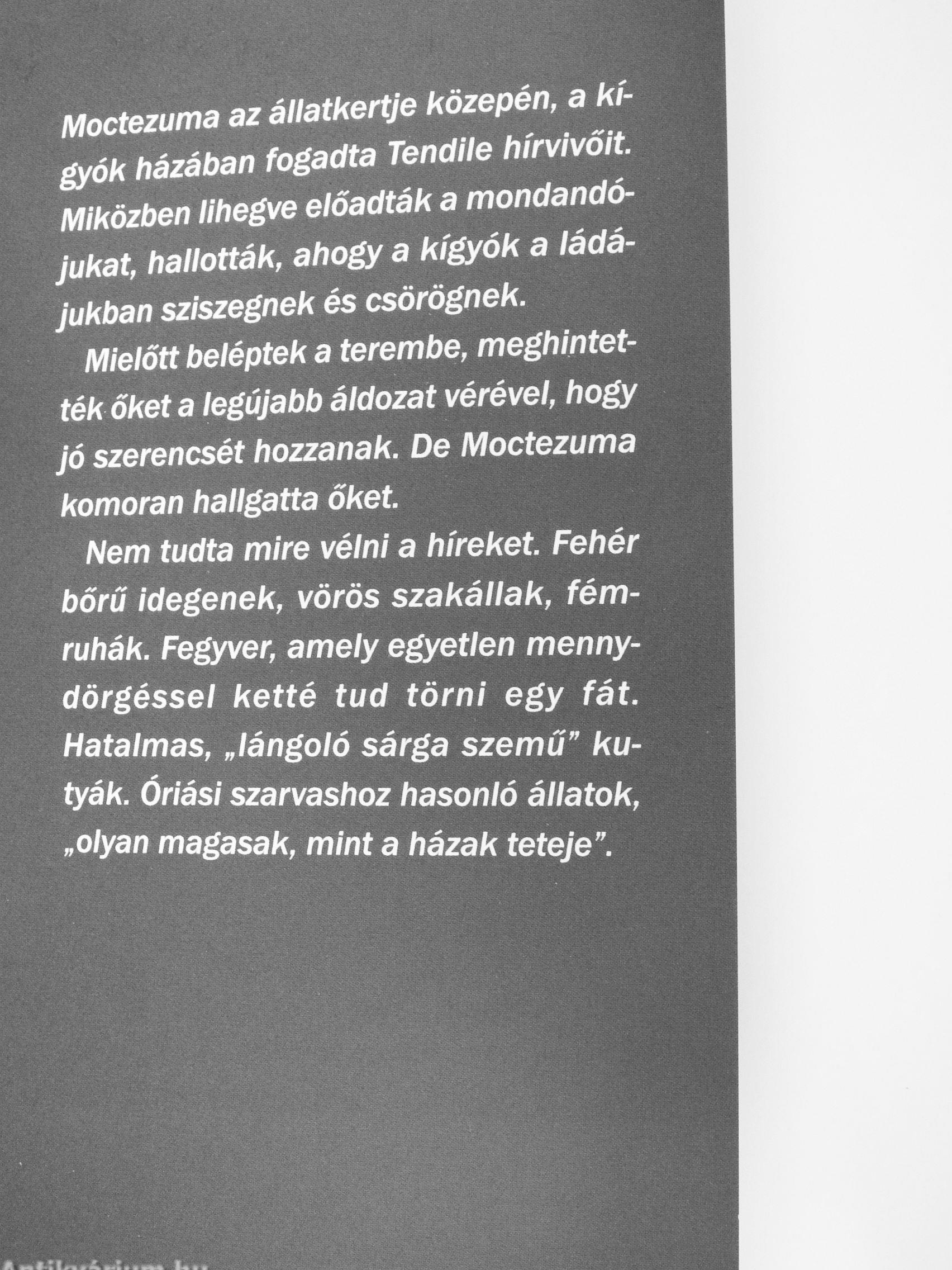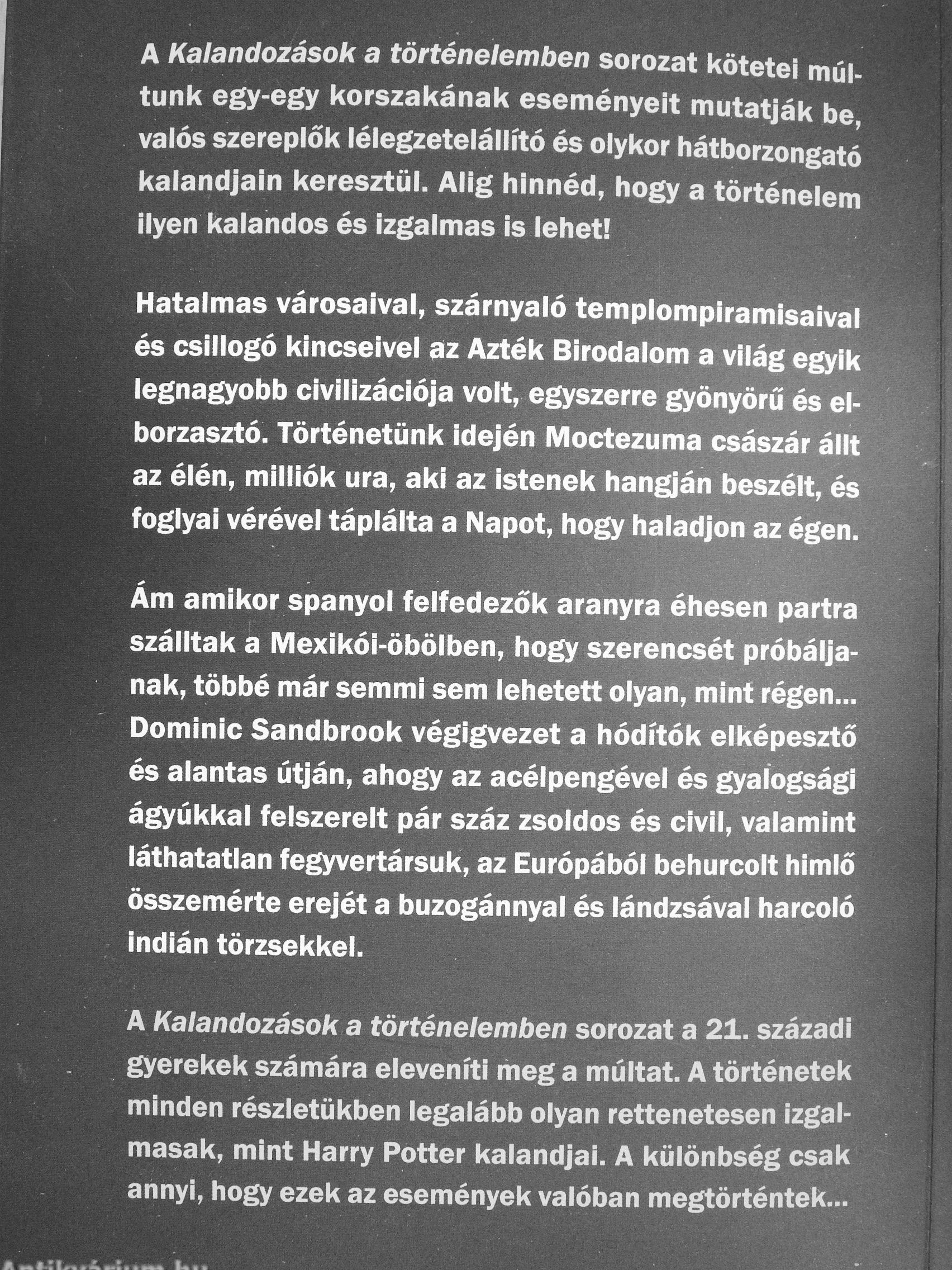 Hatalmas városaival, szárnyaié tempiompiramisaivai és csiiiogé kincseivei Azték Birodalom a világ egyik legnagyobb civilizációja volt, egyszerre gyönyörű és ei-borzaszté. Történetünk idején Moctezuma császár állt az élén, milliók ura, aki az istenek hangján beszélt, és fogiyai vérévei táplálta a Napot, hogy haladjon az égen.