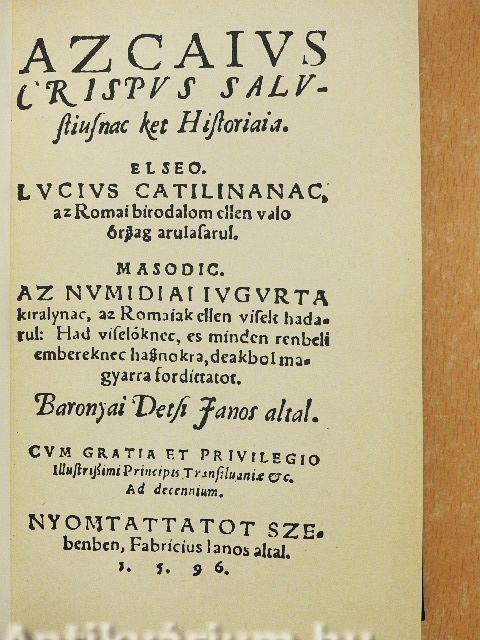 Az Caius Crispus Sallustiusnak két históriája Az Caius Crispus Sallustiusnak két históriája Az Caius Crispus Sallustiusnak két históriája Az Caius Crispus Sallustiusnak két históriája