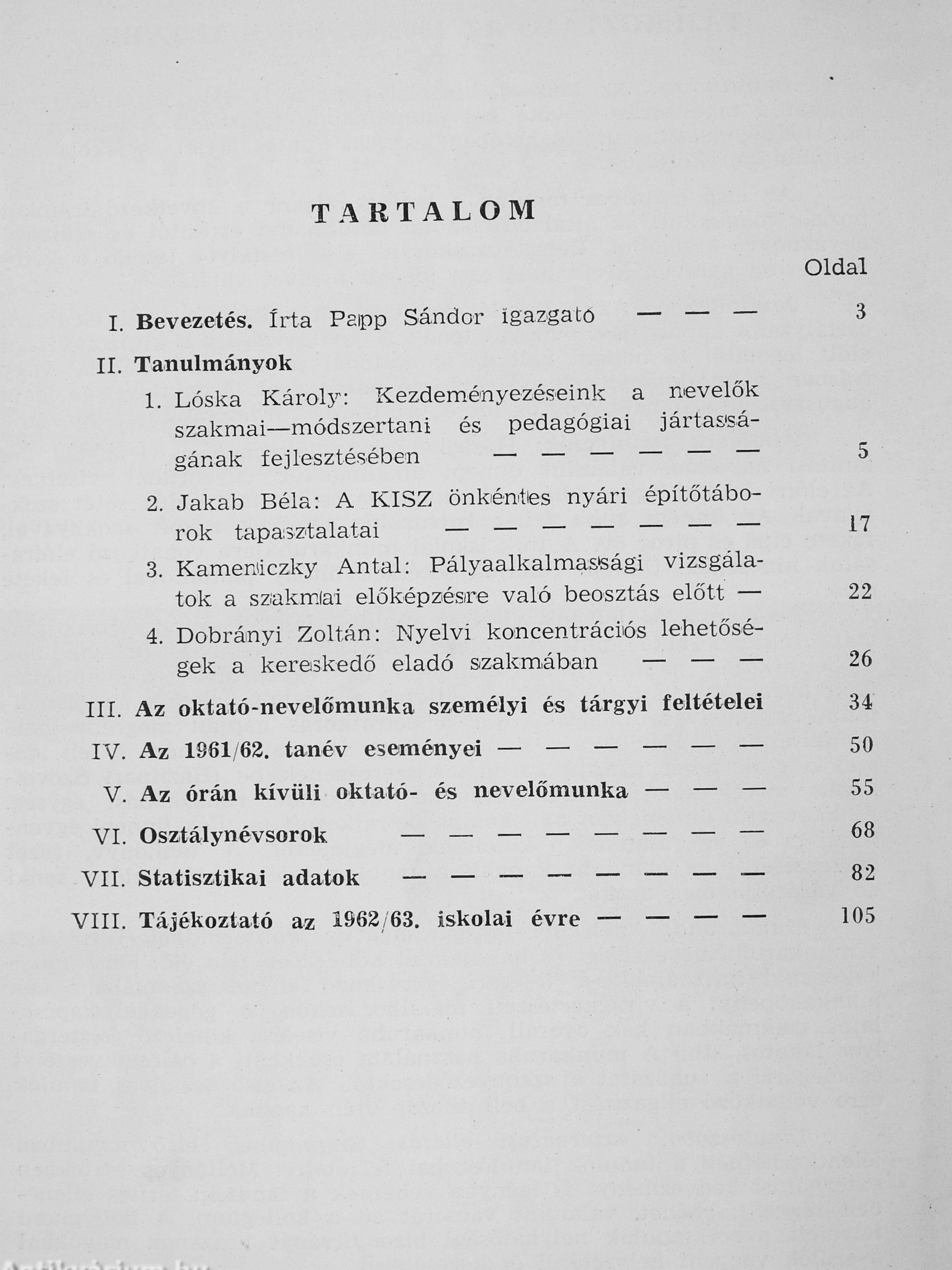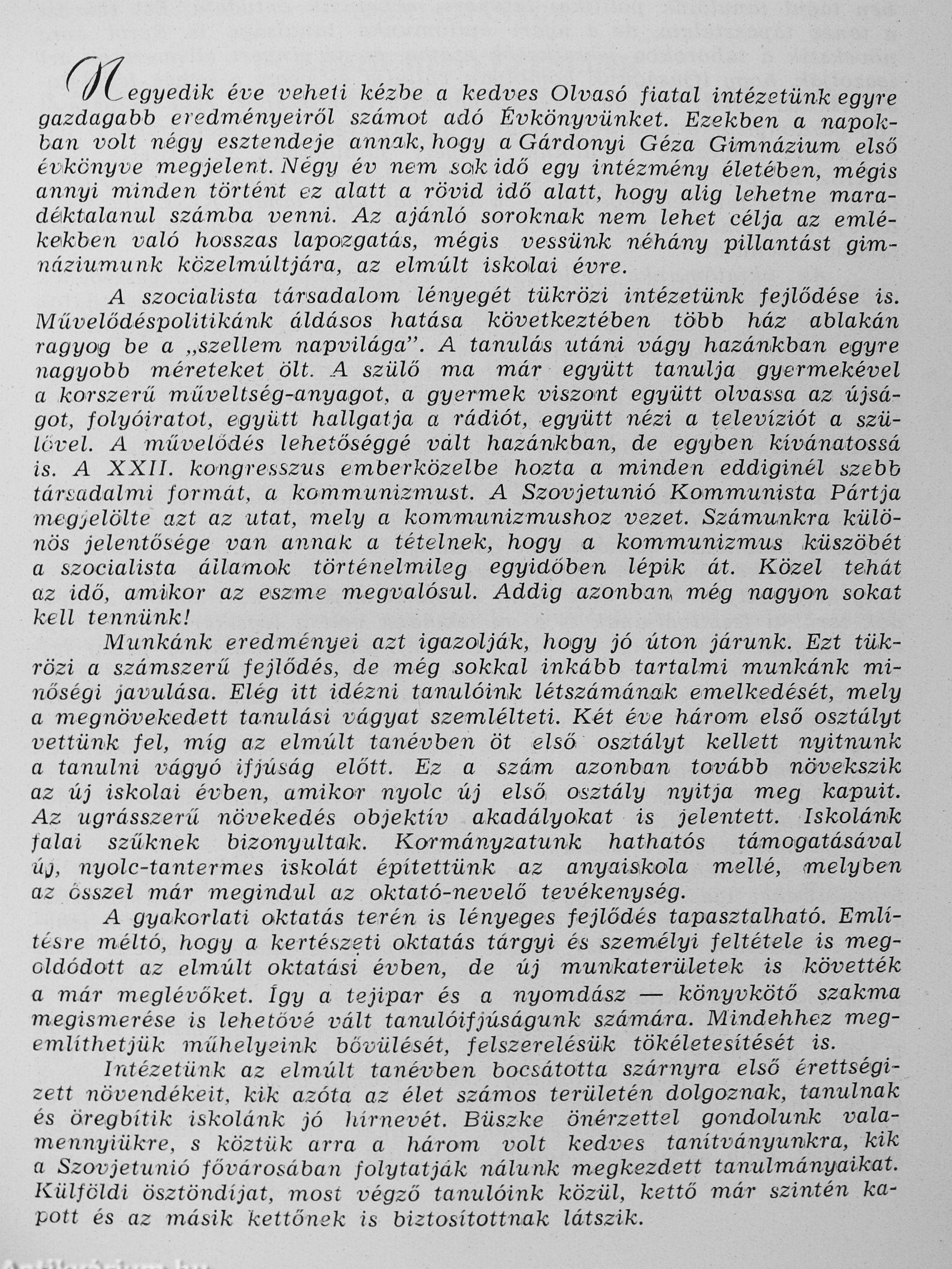 Az Egri Gárdonyi Géza Koedukált Ált. Gimnázium értesítője az 1961-62. iskolai évről