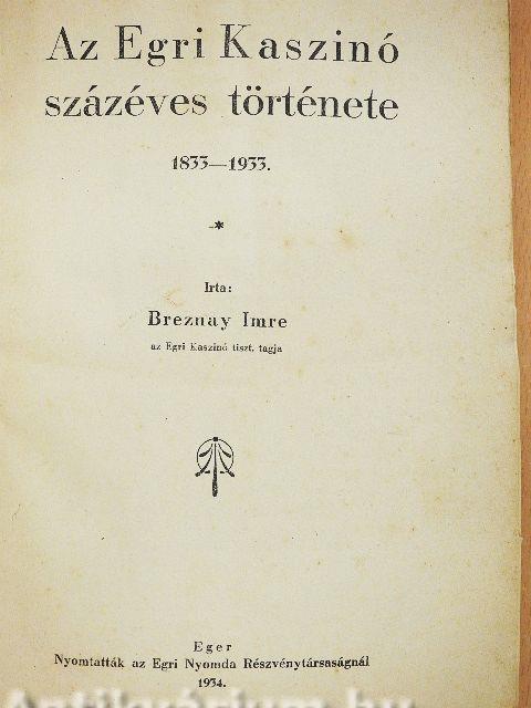Megjegyzés: Fekete-fehér fényképekkel, reprodukciókkal illusztrálva. Nyomtatták az Egri Nyomda Részvénytársaságnál, Eger. Irta: Breznay Imre az Egri Kaszinó tiszt. tagja