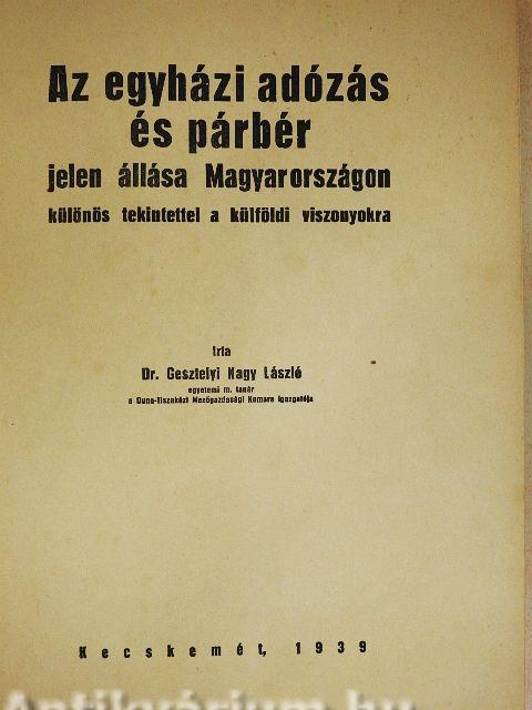 Az egyházi adózás és párbér jelen állása Magyarországon