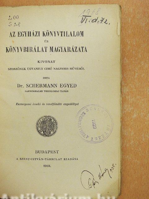 | Megjegyzés: | Kivonat szerzőnek ugyanily című nagyobb művéből. Irta Dr. Schermann Egyed pannonhalmi theologiai tanár. A Stephaneum nyomda r. t. nyomása. |